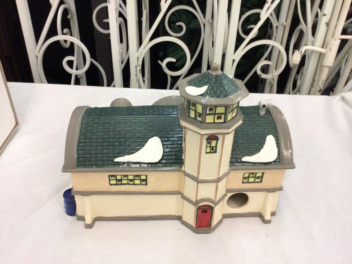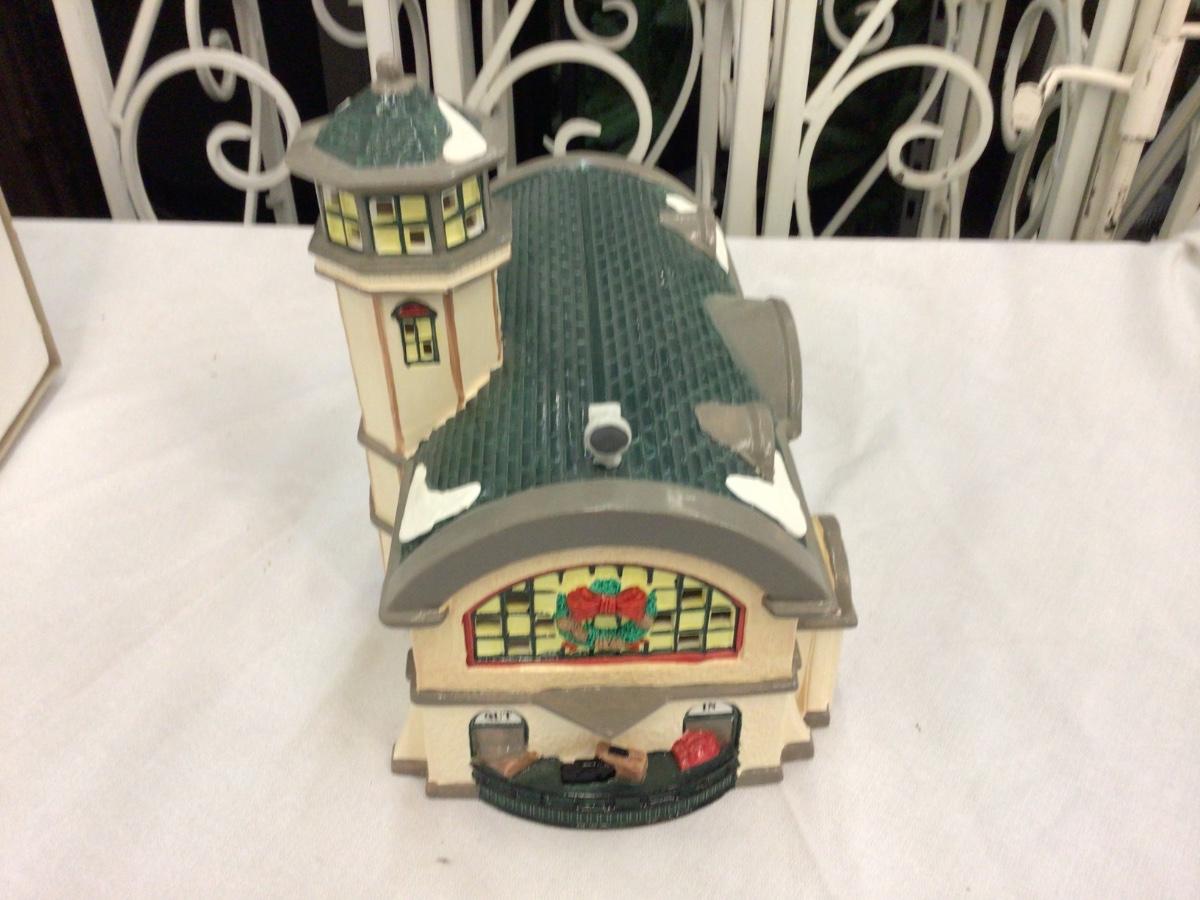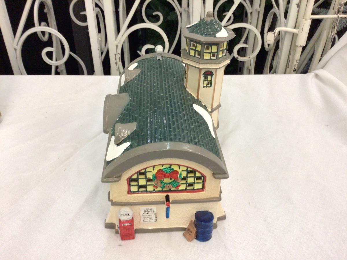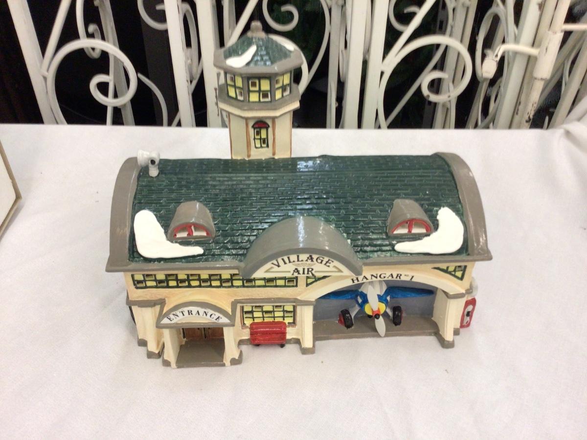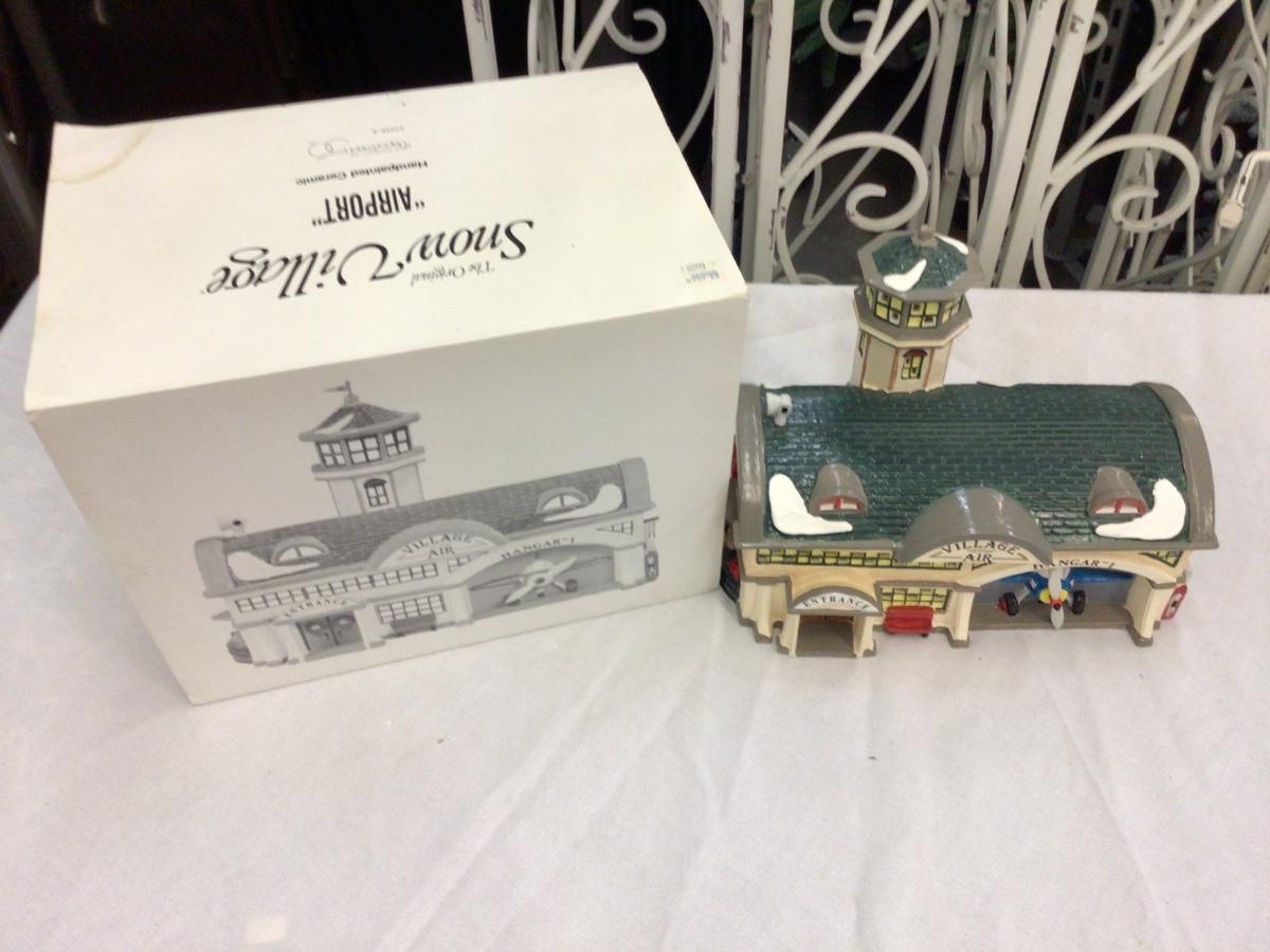 You get Airport Dept. 56 Snow Village with box and light. The box does have some water damage.