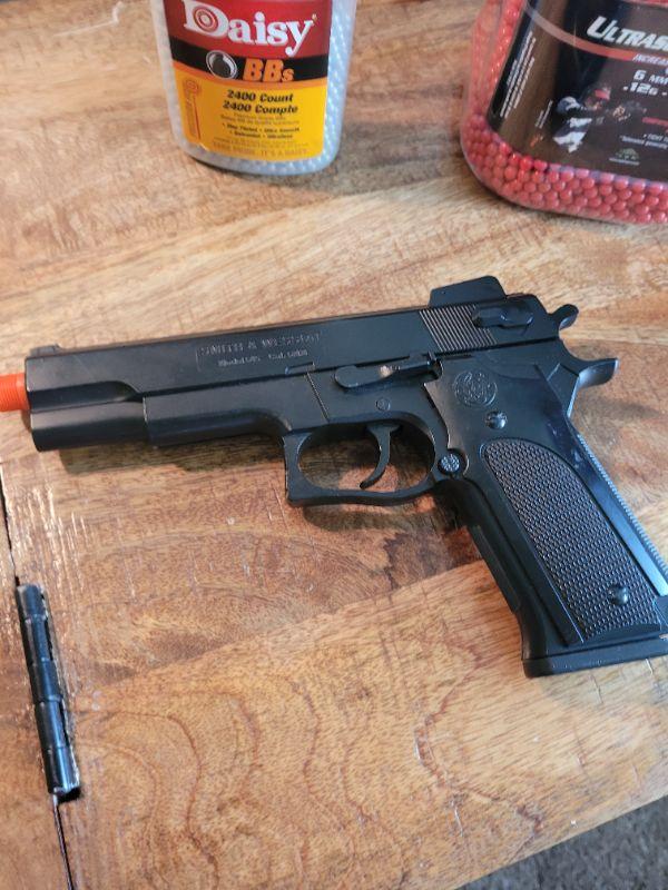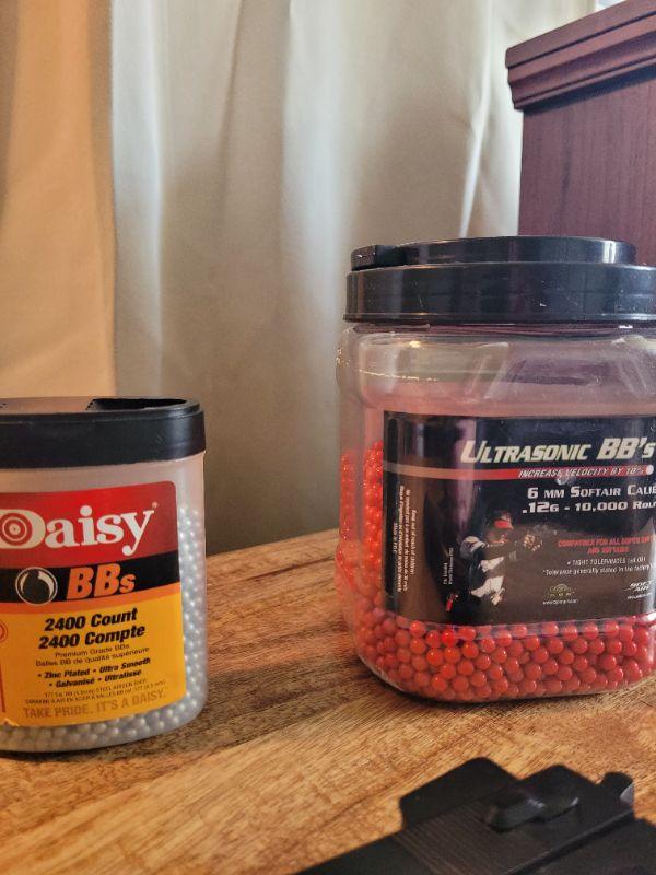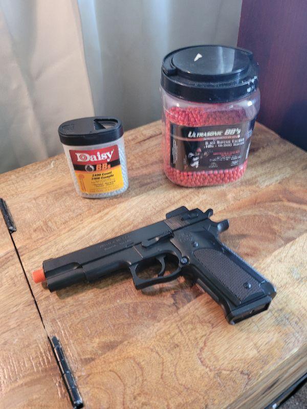 Airsoft spring load pistol and 2 mostly full jars of BB's