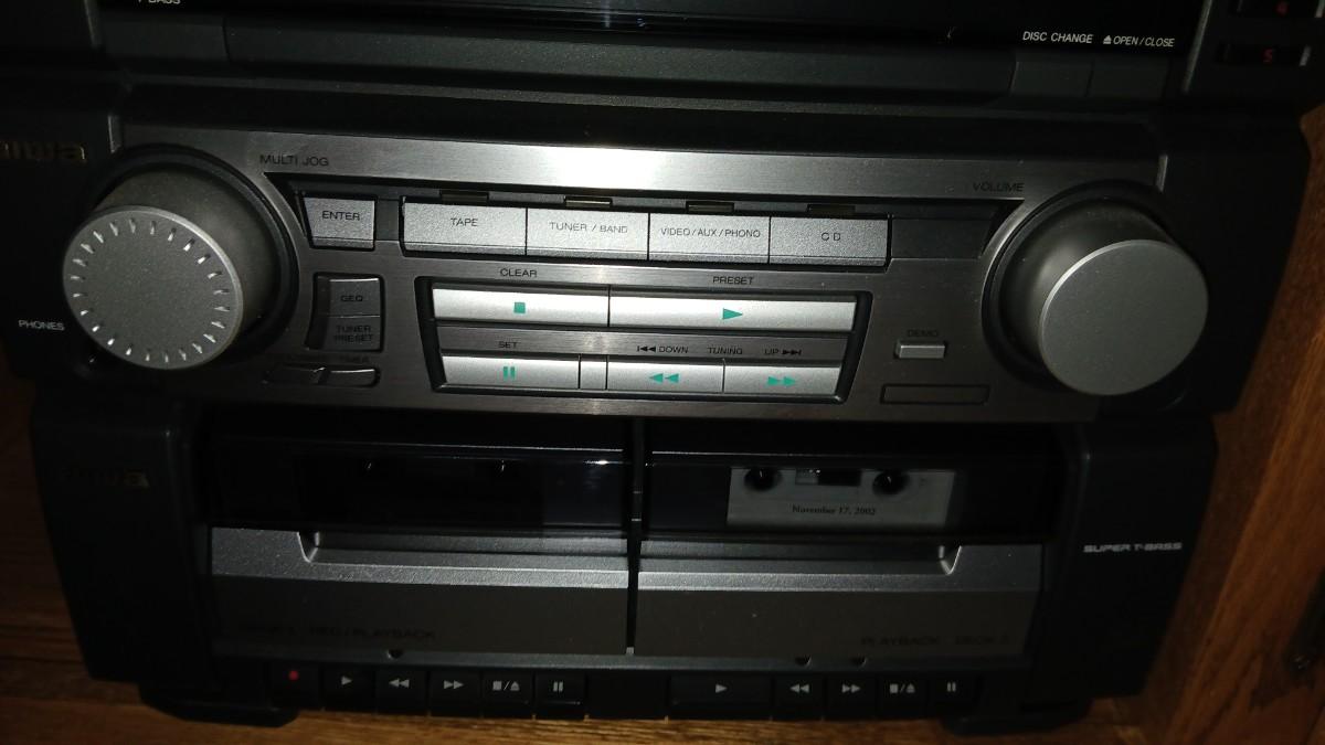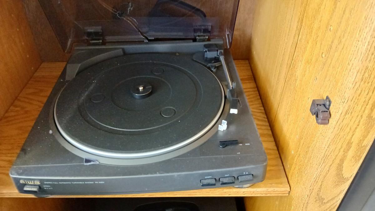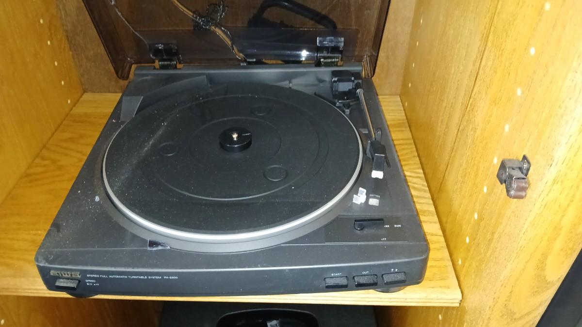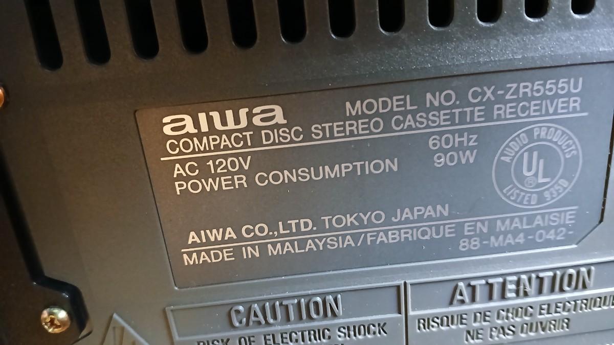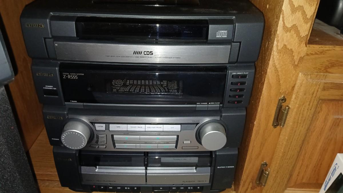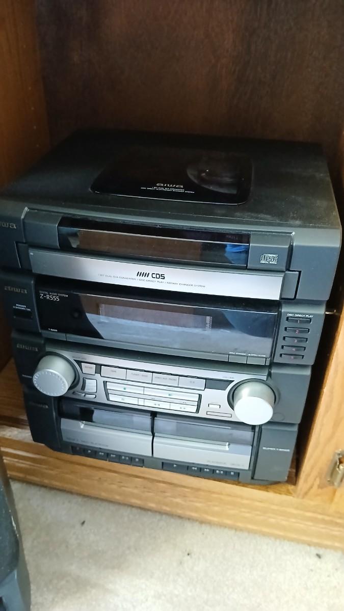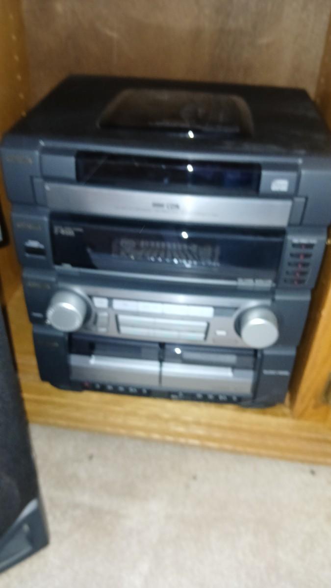 Aiwa Stereo system with record player - dual cassette - CD and Tuner The plastic cover for the record player is cracked. This unit appears to be lightly used / new. Model No. SX-ZR25