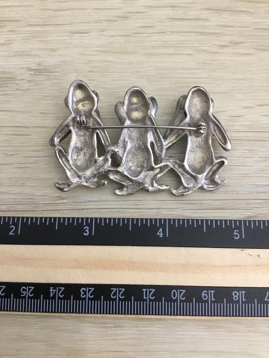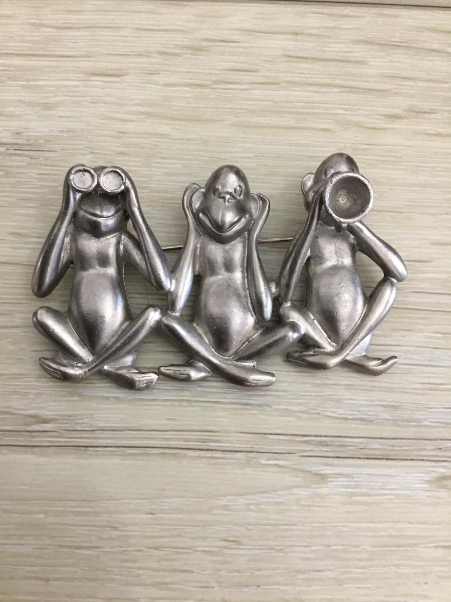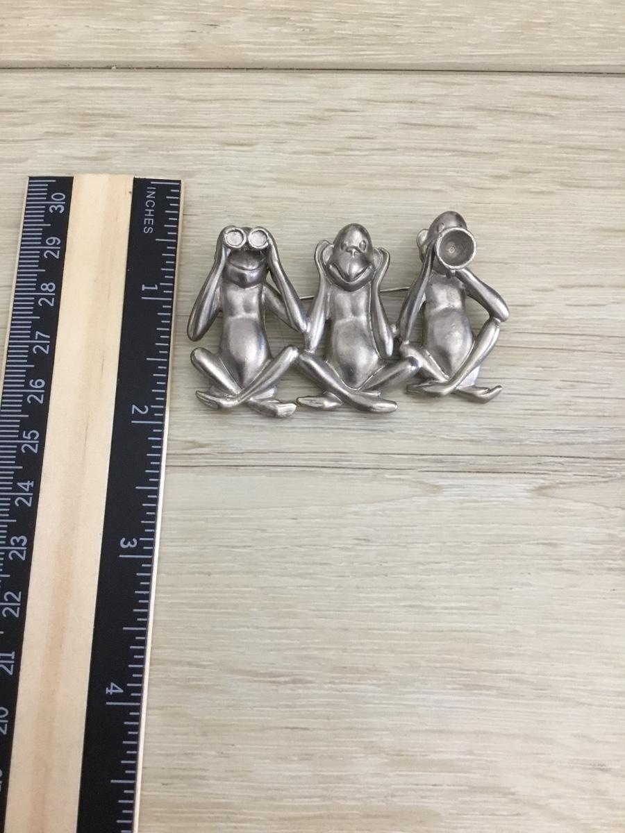 Ajc Marked three monkeys pewter brooch