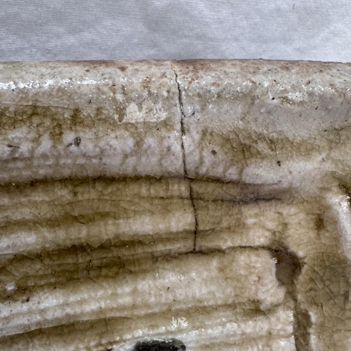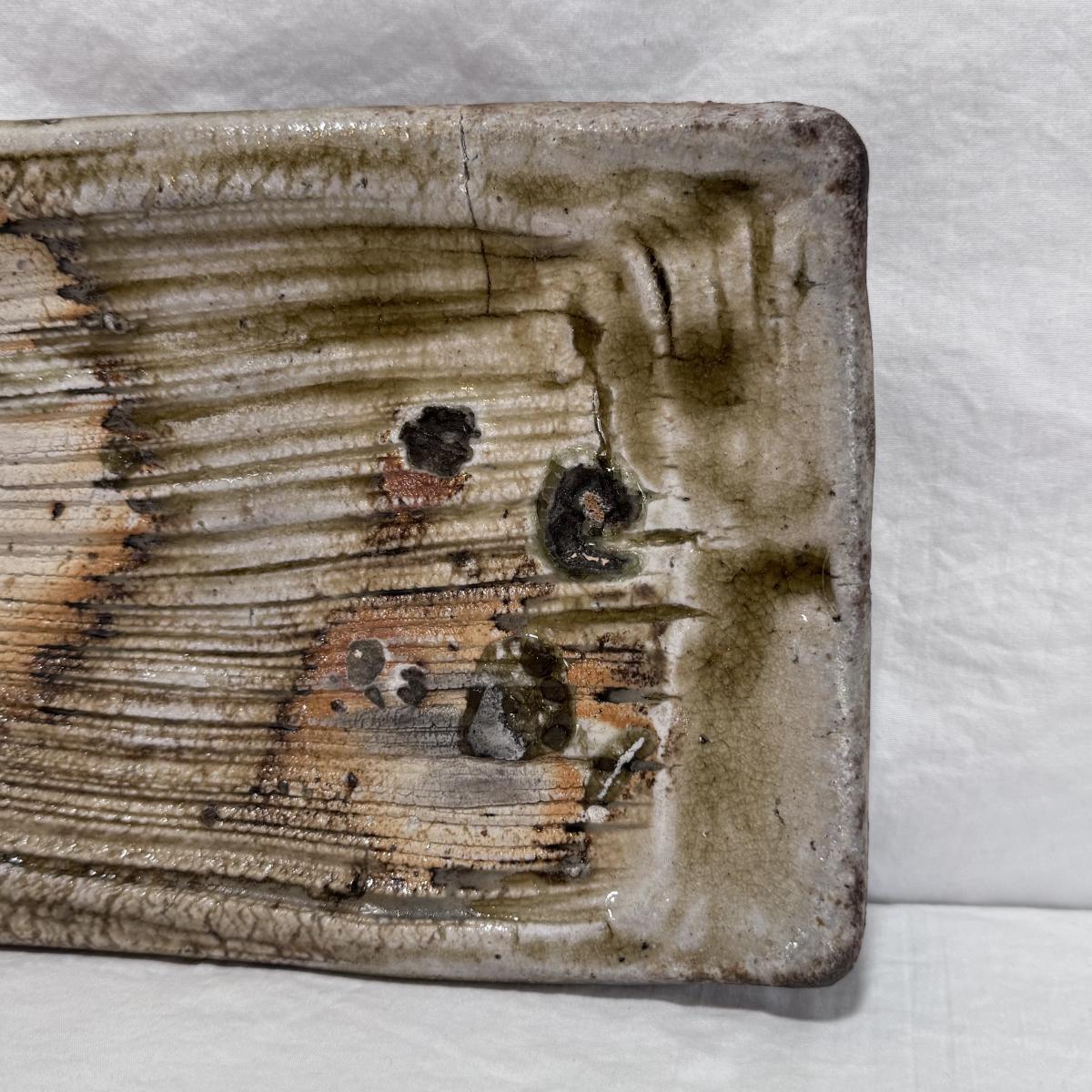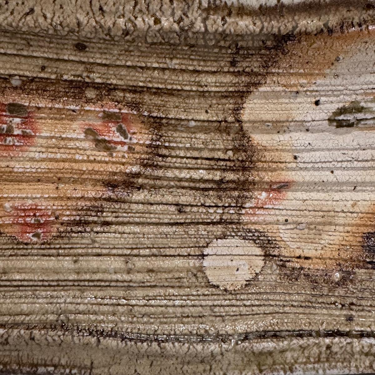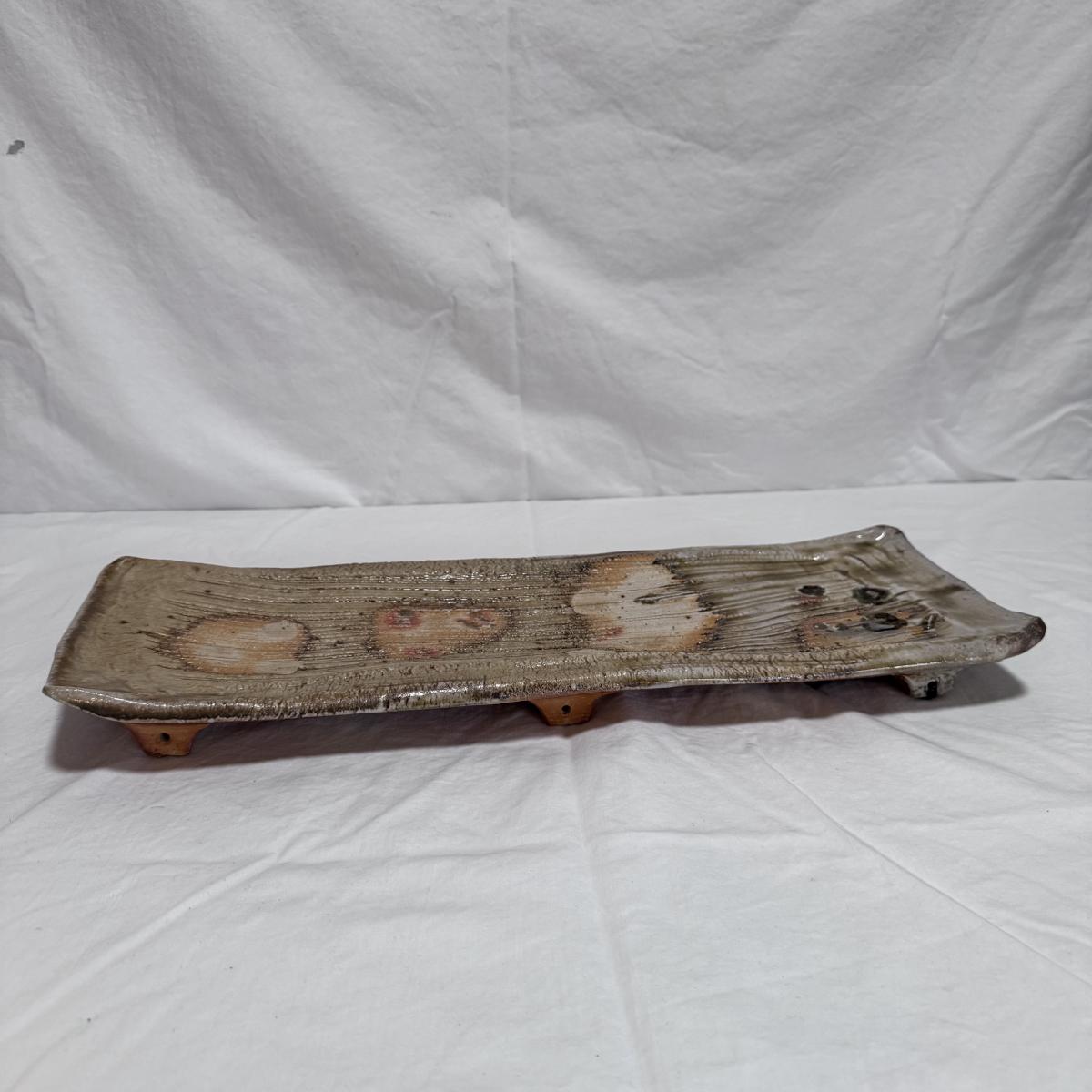 This lot includes one Akira Satake plate made of ceramic. The plate has a zip tie on the back for hanging purposes. There is one small crack on this piece - see pictures included. The plate measures 19.35” x 6.5” x 1.5”H. It appears to be signed on the back with Satake. Per the homeowner, piece was purchased from the artist in 2013. Shipping available.