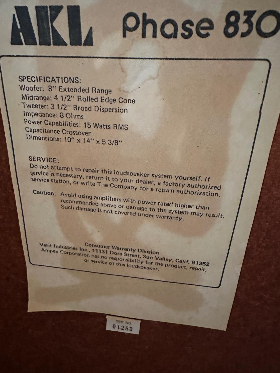 AKL Phase 830 Vintage Speaker Pair