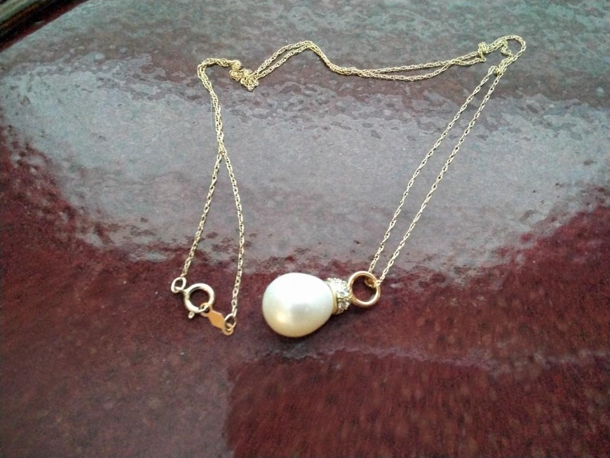This beauty is quite substantial and has a gorgeous sheen to it. 14k gold chain and bale compliment it nicely!