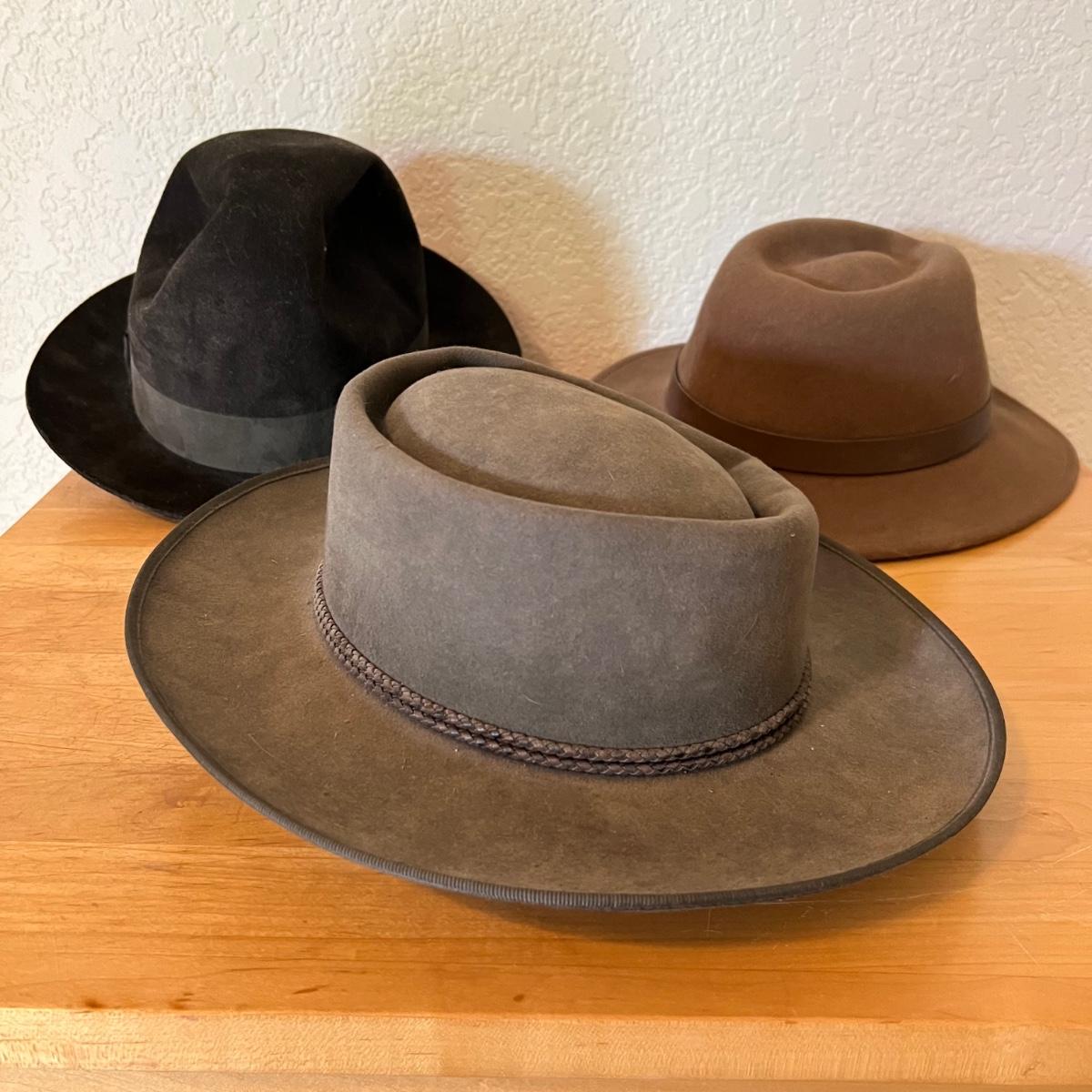 Three quality men’s hats includes a pure fur felt Akubra, a 100% virgin wool Pendleton and a Peerless. See images for sizes.
