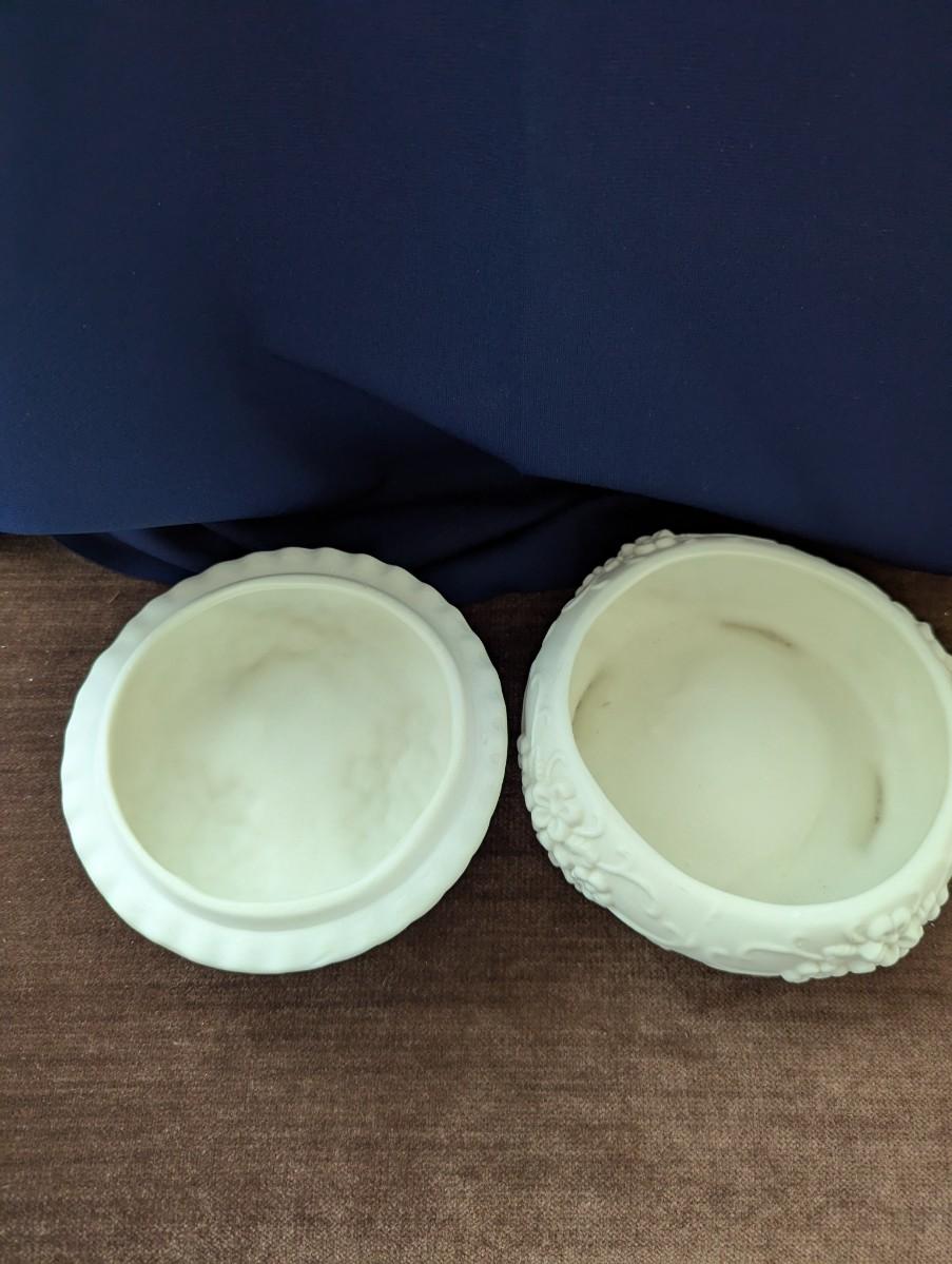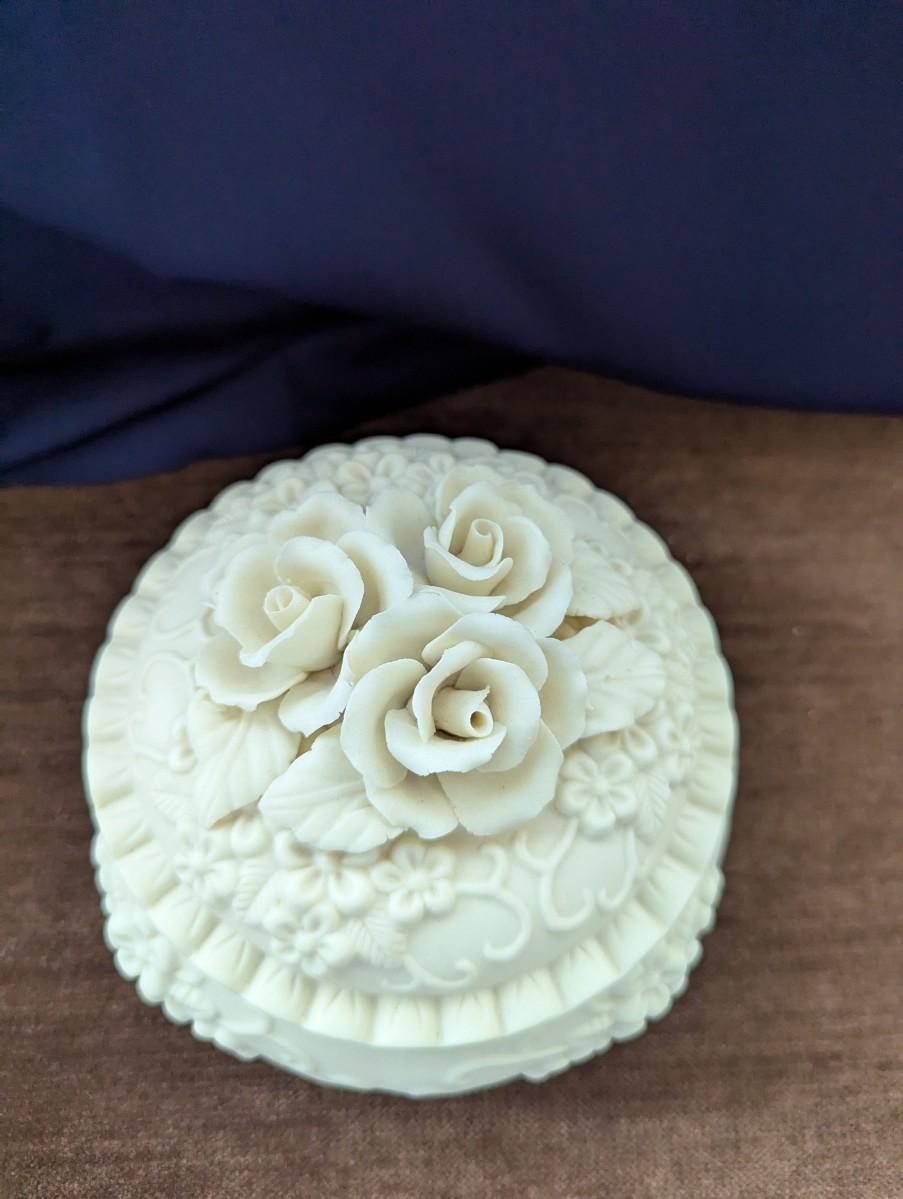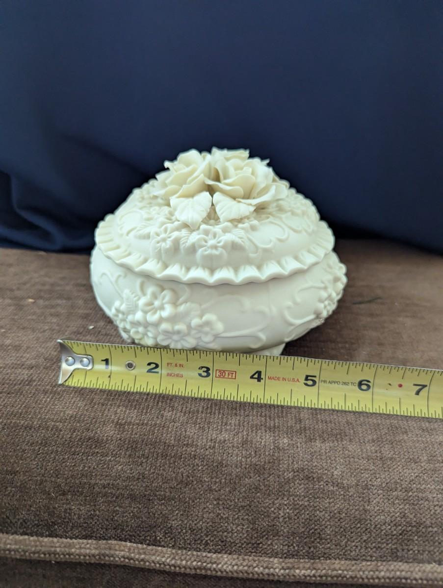 Beautiful victorian style porcelain bisque trinket or jewelry box with lid.