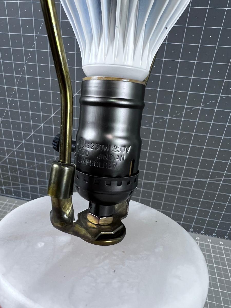 Good Clean Condition. Works. Very HEAVY overall 25" Tall. NO Shade on shipping.