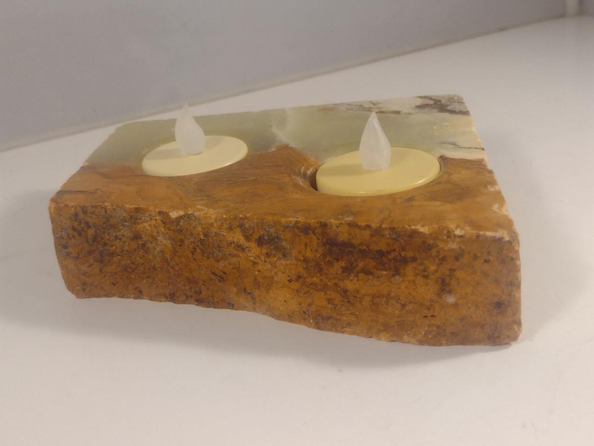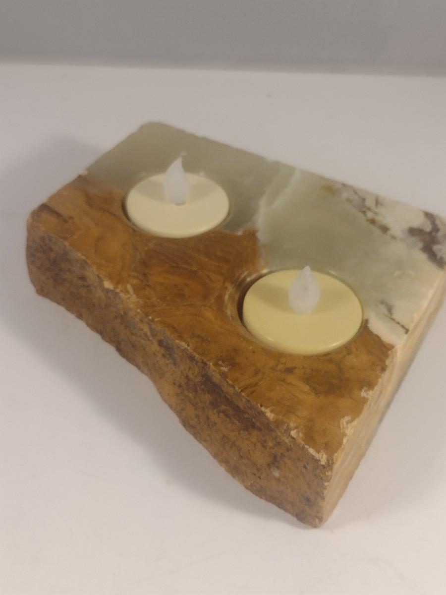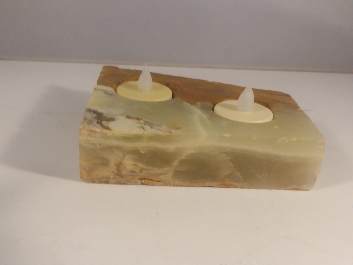 Alabaster/Onyx Two Cavity Candle Holder