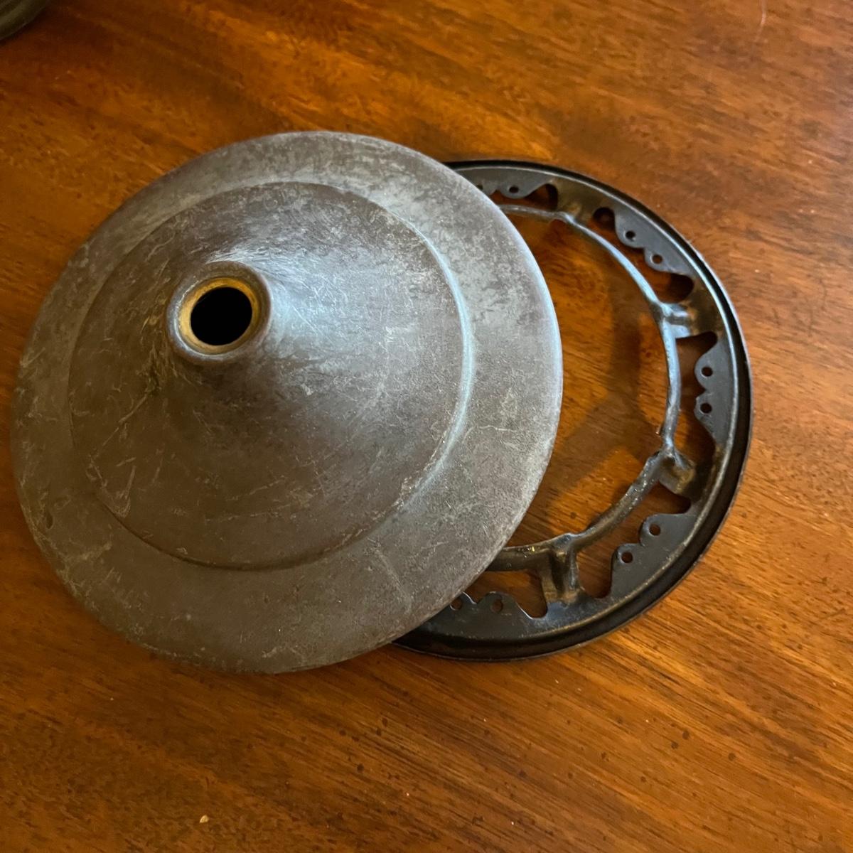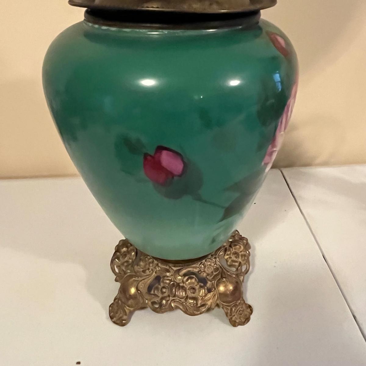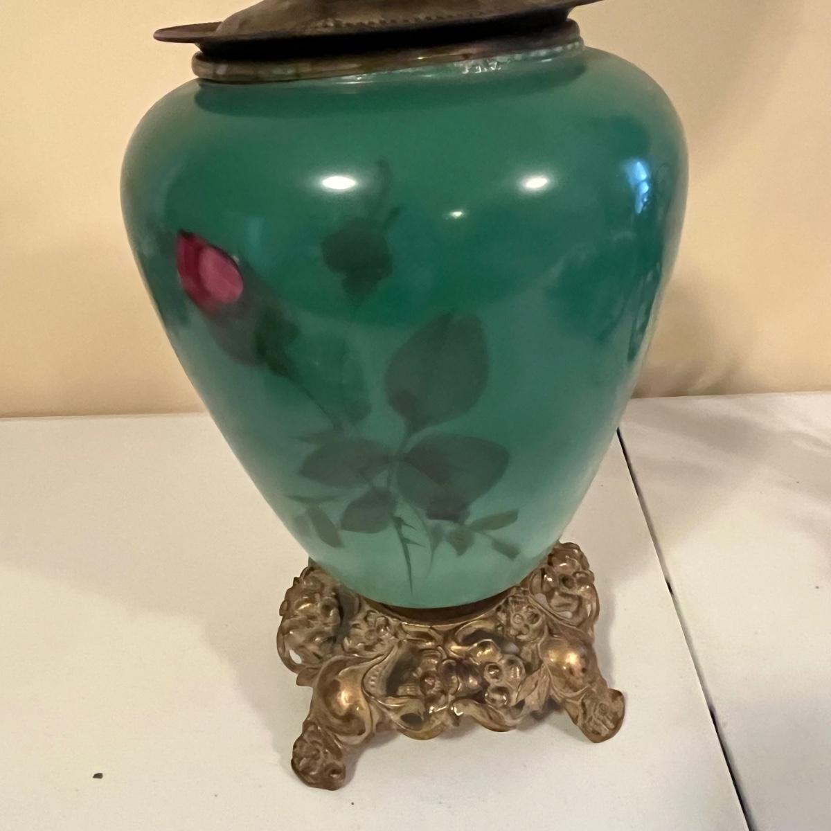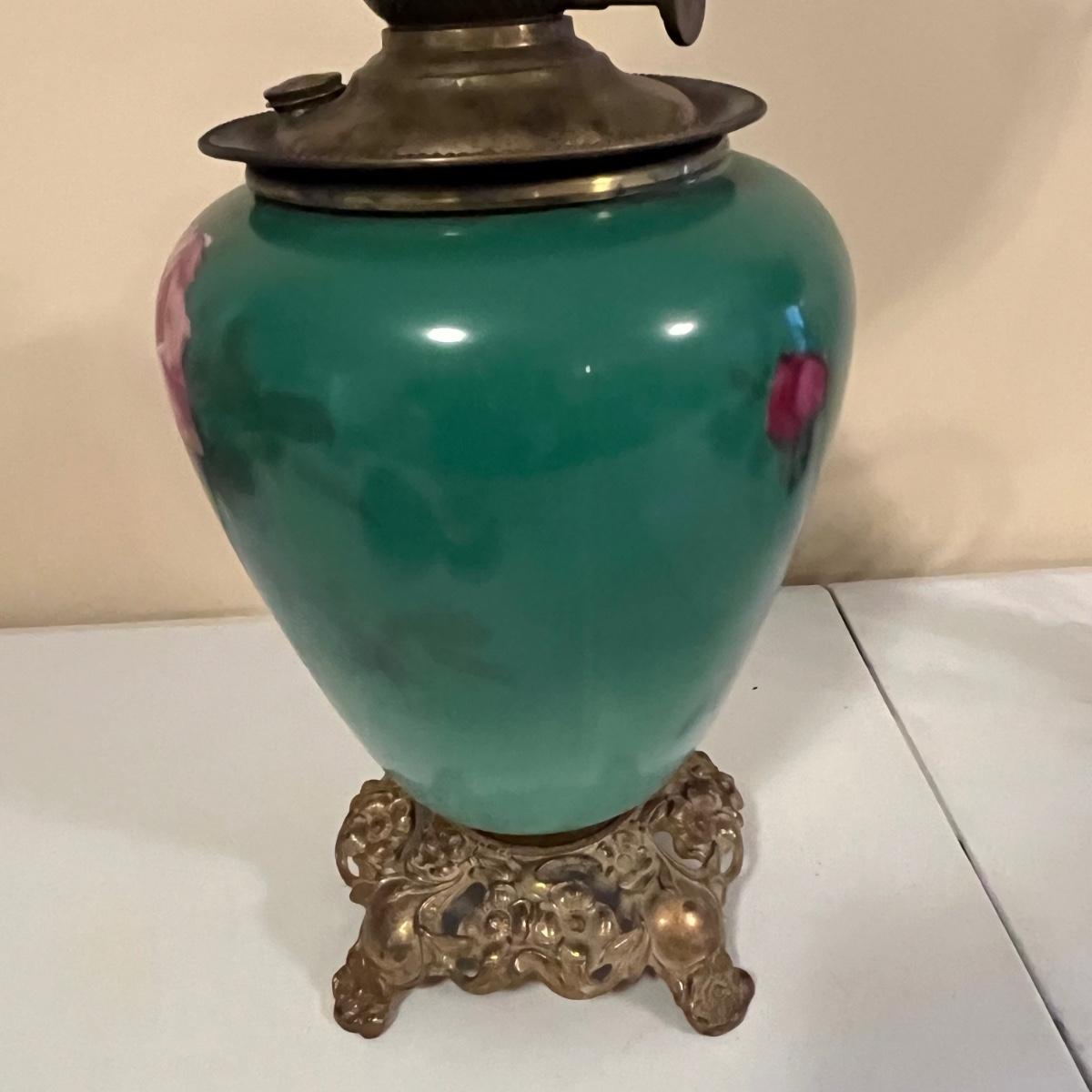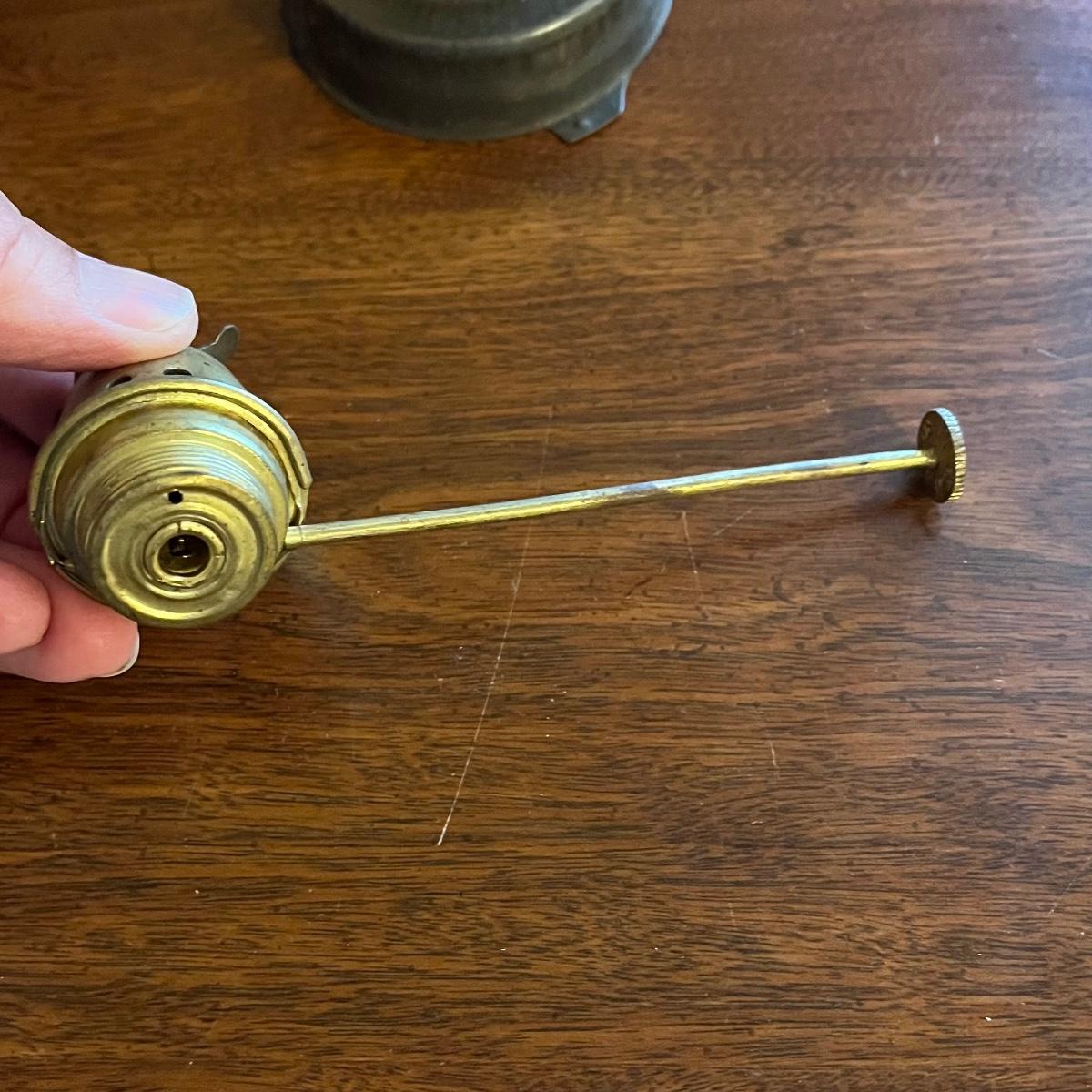 This is a large collection with two oil lamps and many oil lamp parts. The Aladdin oil lamp measures 10”D at the base x 22.5”H. The Success oil lamp measures 9”D x 18”H. Parts include bases, Edward Miller and Fostoria flame spreaders, and much more. See pictures for details.