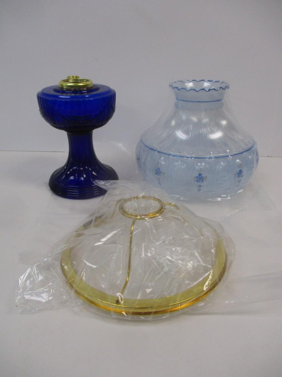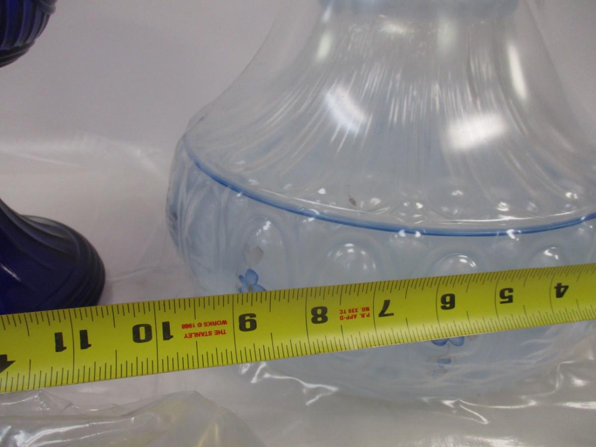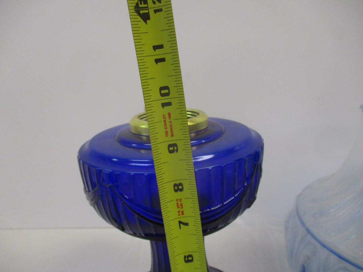 Aladdin Blue Meadow Flower Glass Oil Lamp Shade Clear Top 10" With Cobalt Blue Lamp Base #2