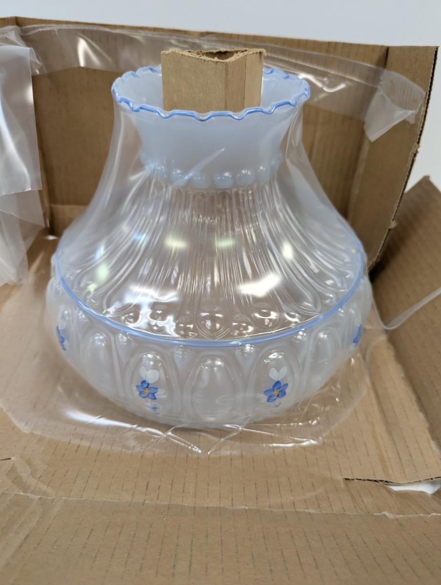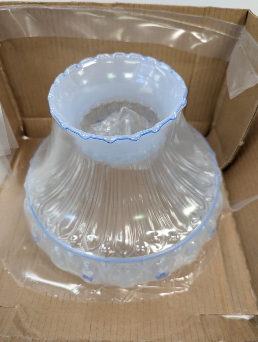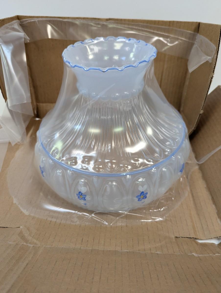 Aladdin Blue Meadow Flower Glass Oil Lamp Shade Clear Top With Base 10" #4