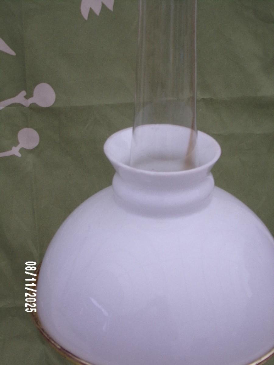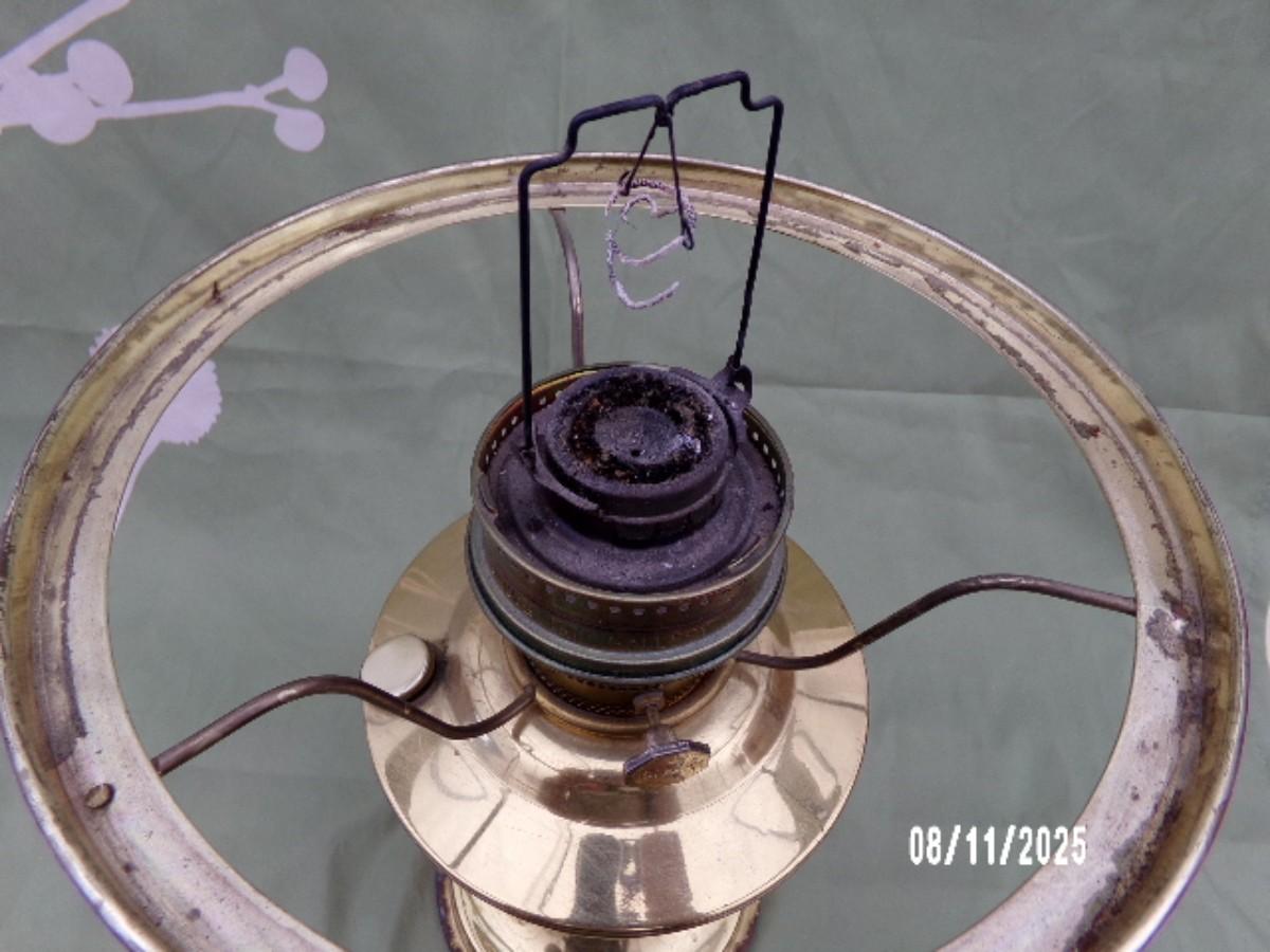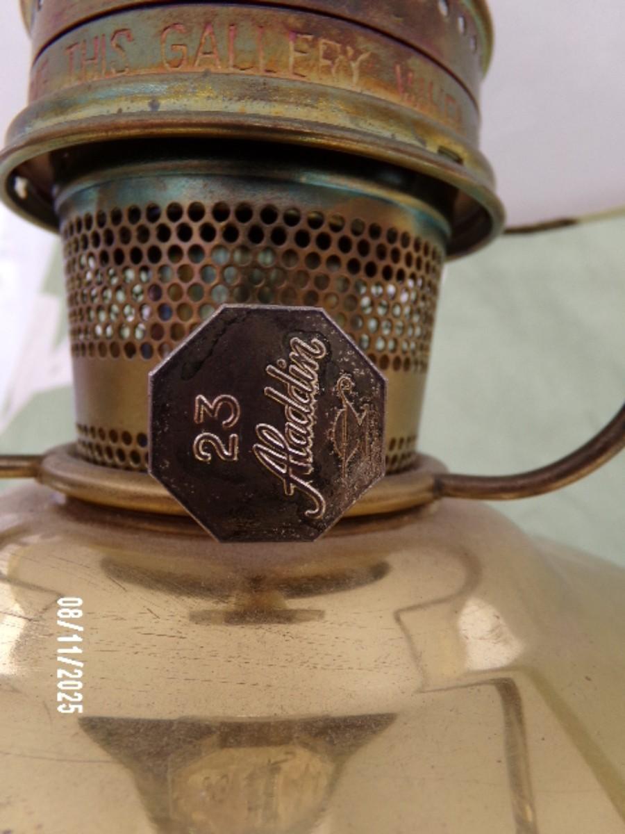 Aladdin kerosene lamp w/metal base, complete w/lock on chimney