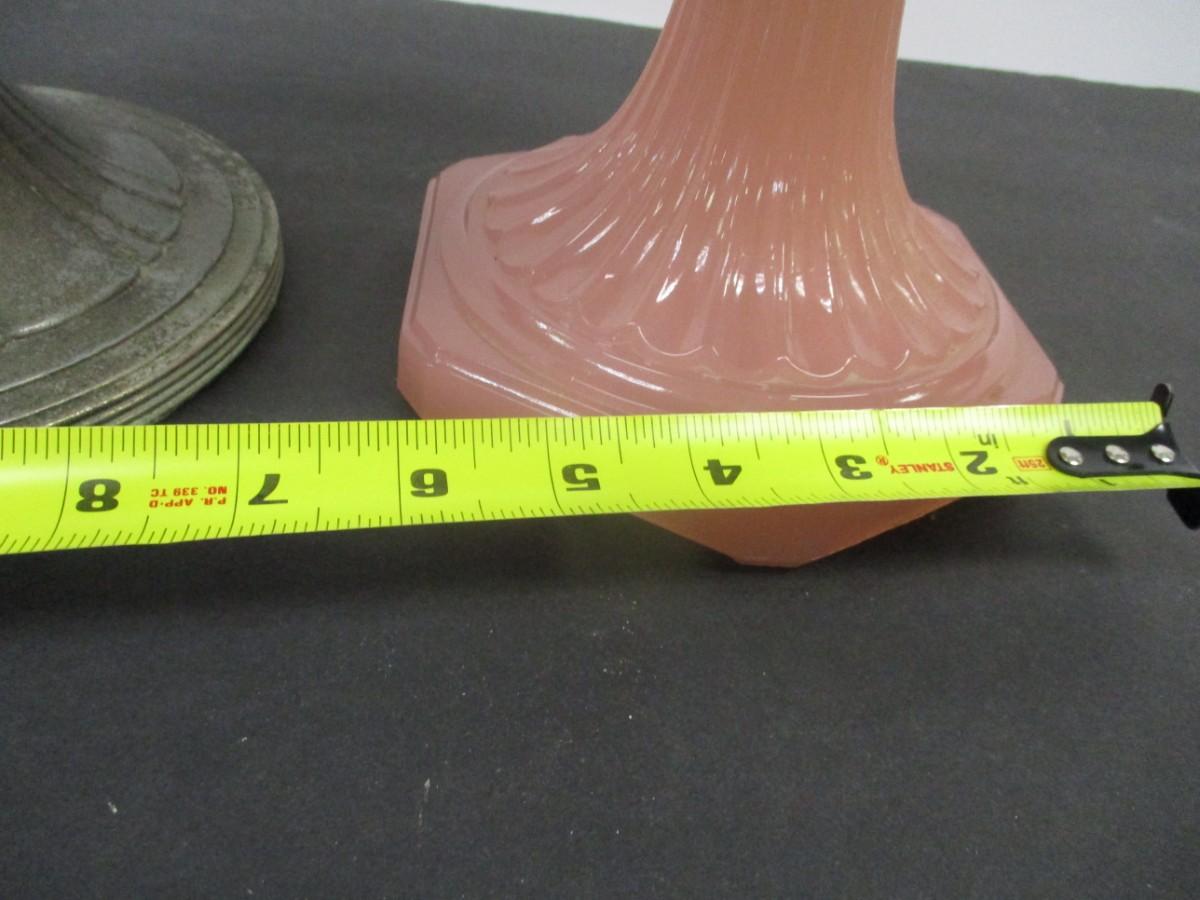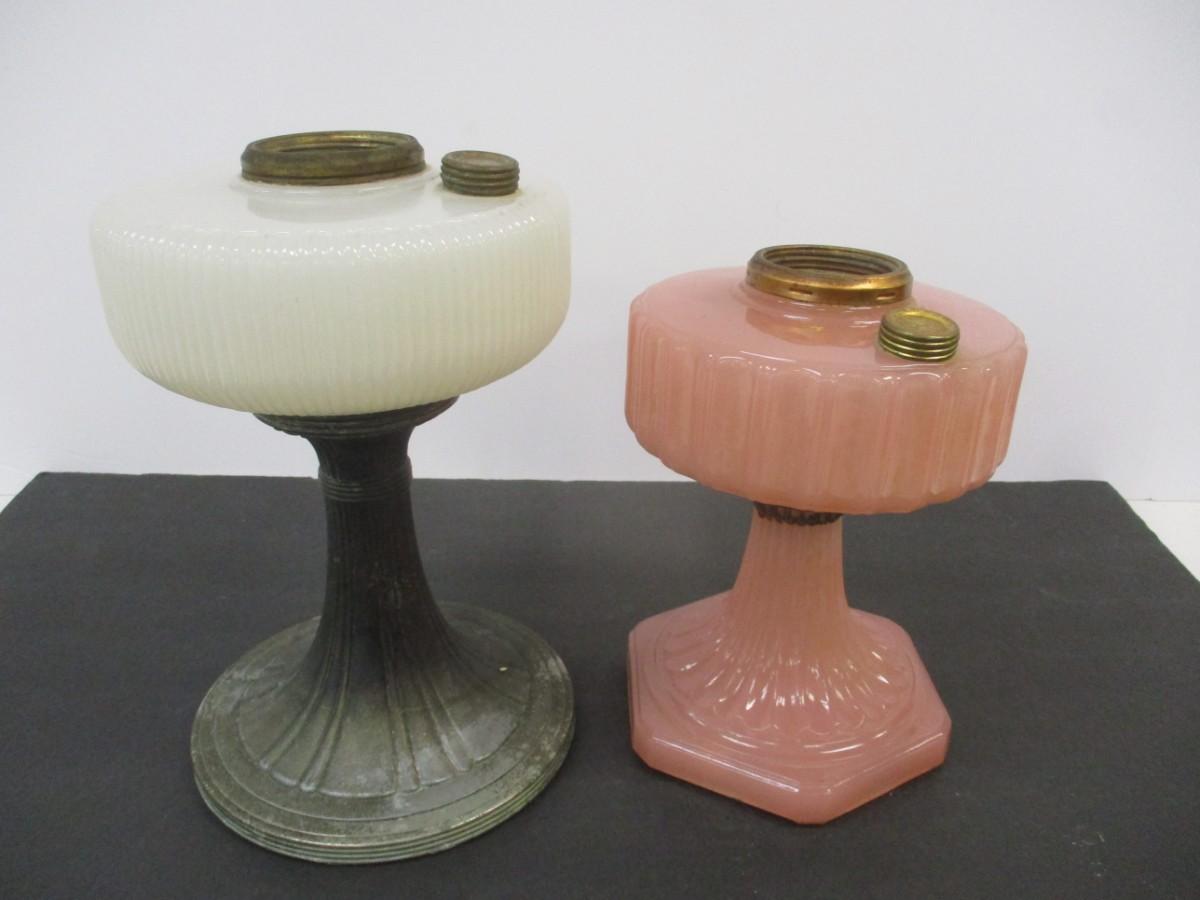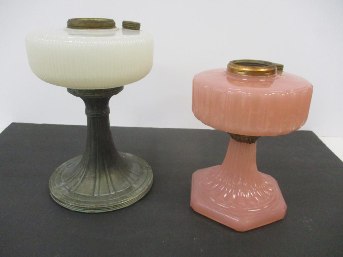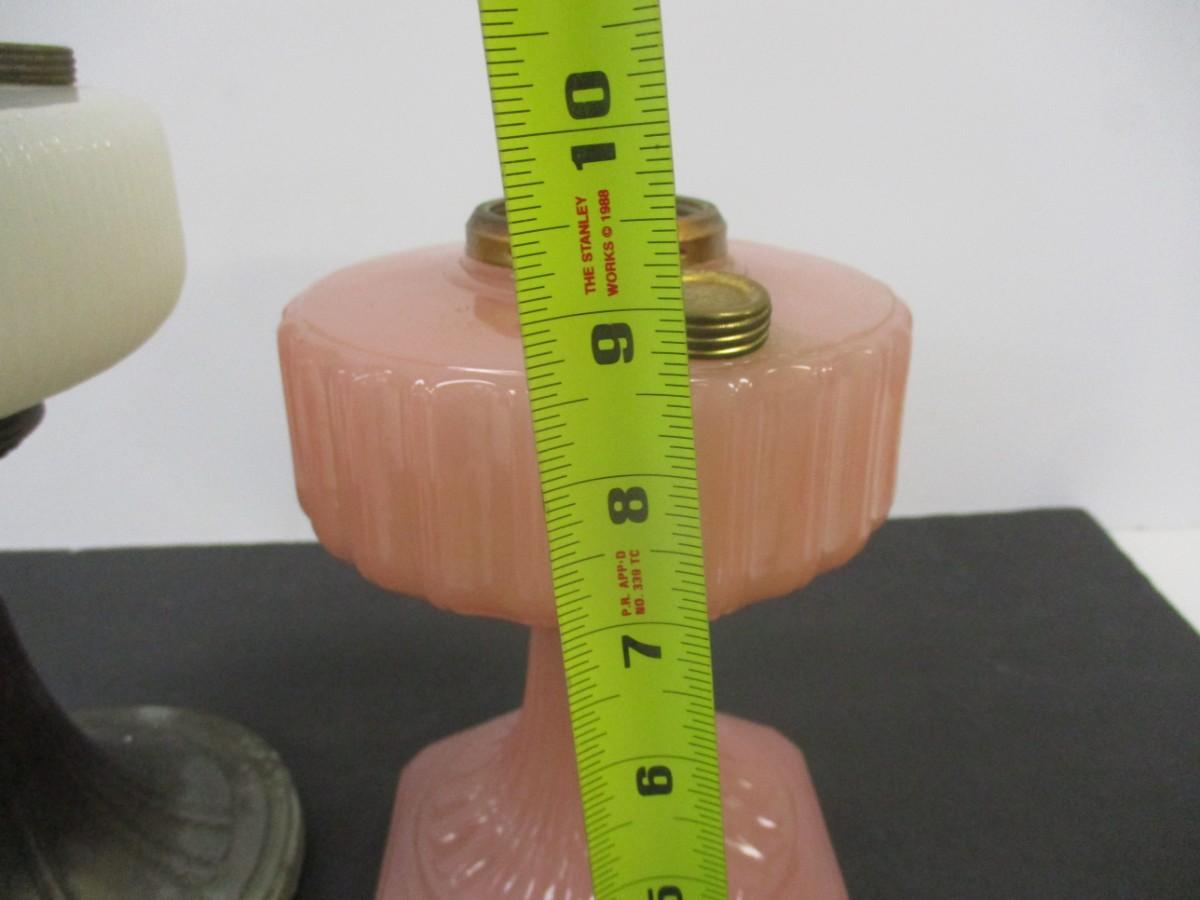 Aladdin Lamp Queens White Moonstone w/ Silver Plated Base & Aladdin Rose Pink Moonstone Corinthian Lamp Base #14