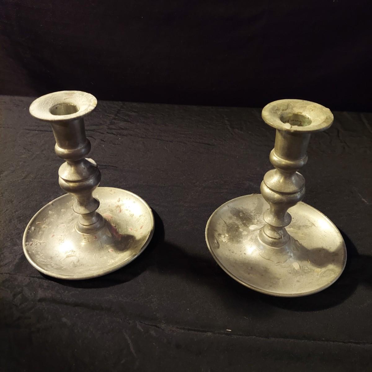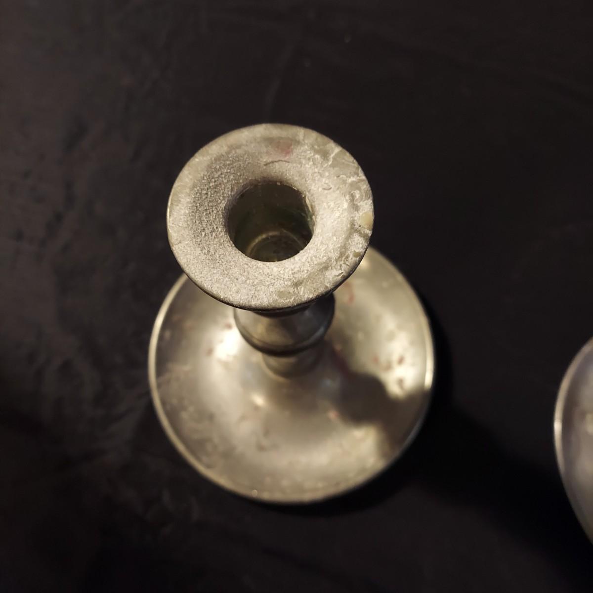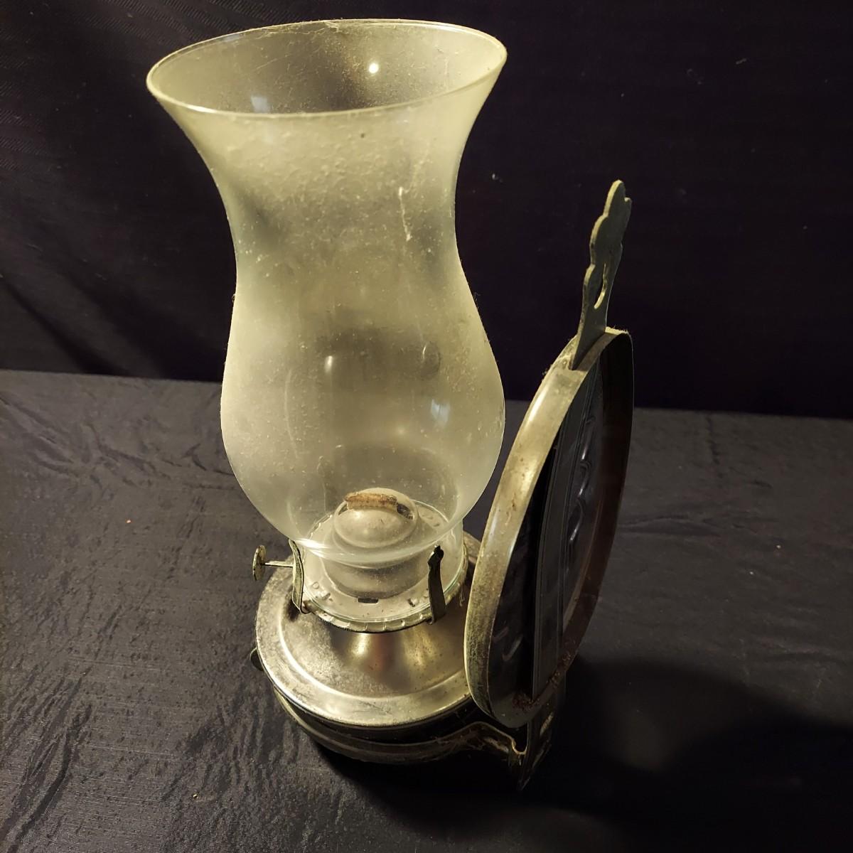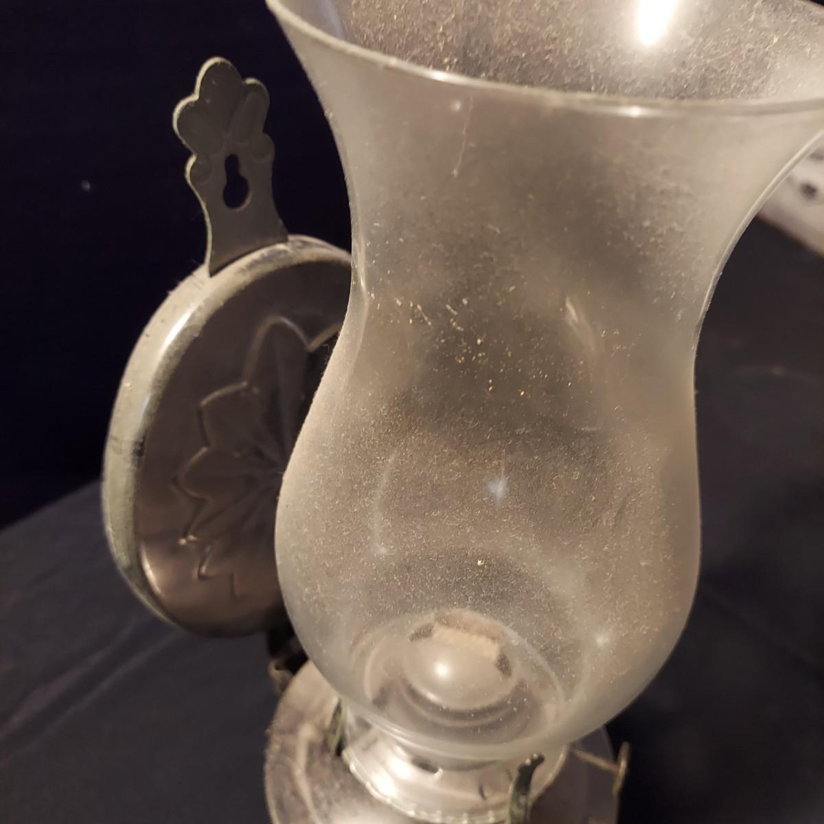 Lot includes a metal, possibly aluminum, oil lamp by Aladdin Lamp Co that measures 6"D x 19"H. With wall mount oil lamp, two extra mantle wicks, an unopened box of lamp oil and two metal candle holders. Please see photos for details. Shipping available