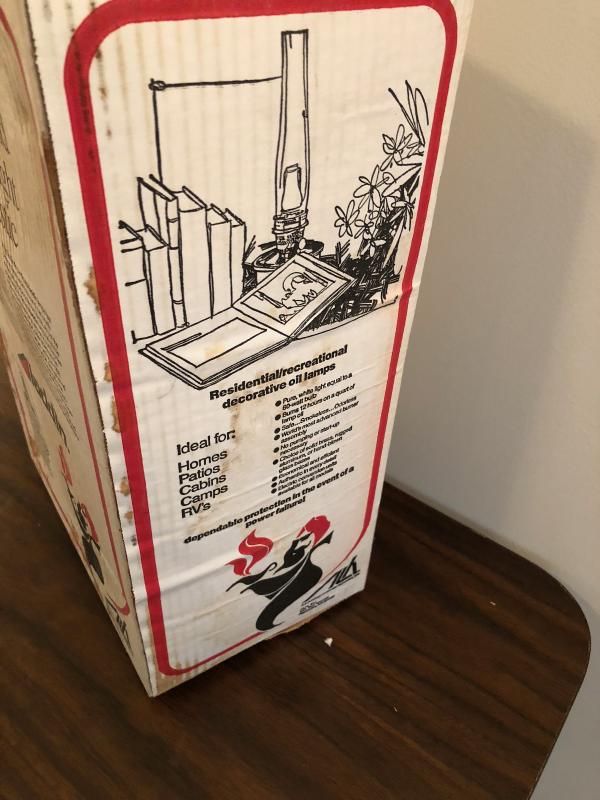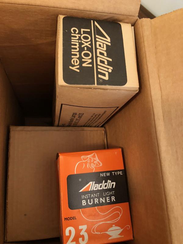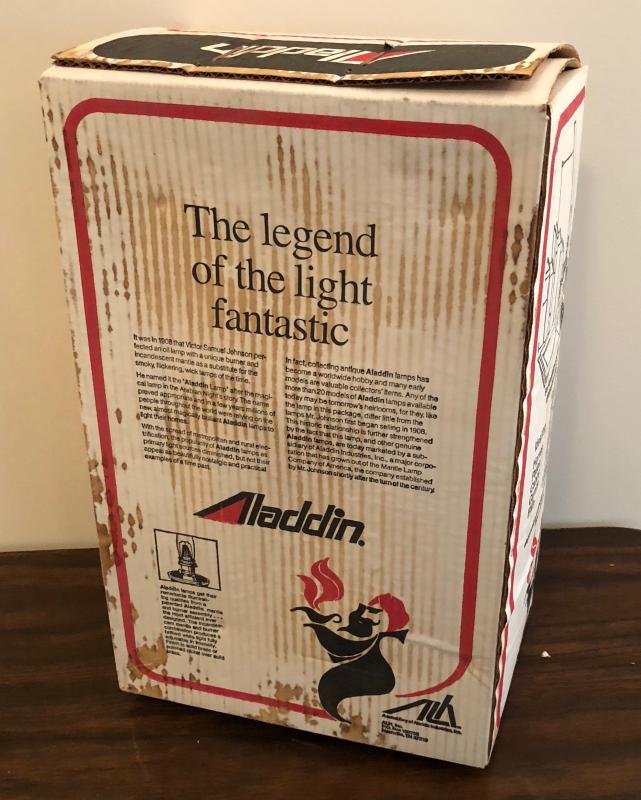 Complete in its box here is an Aladdin oil lamp for residential or recreational use...Very good condition...