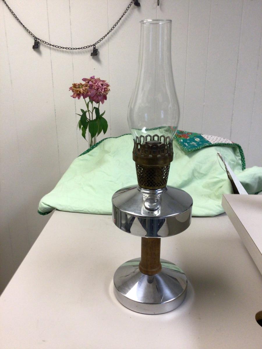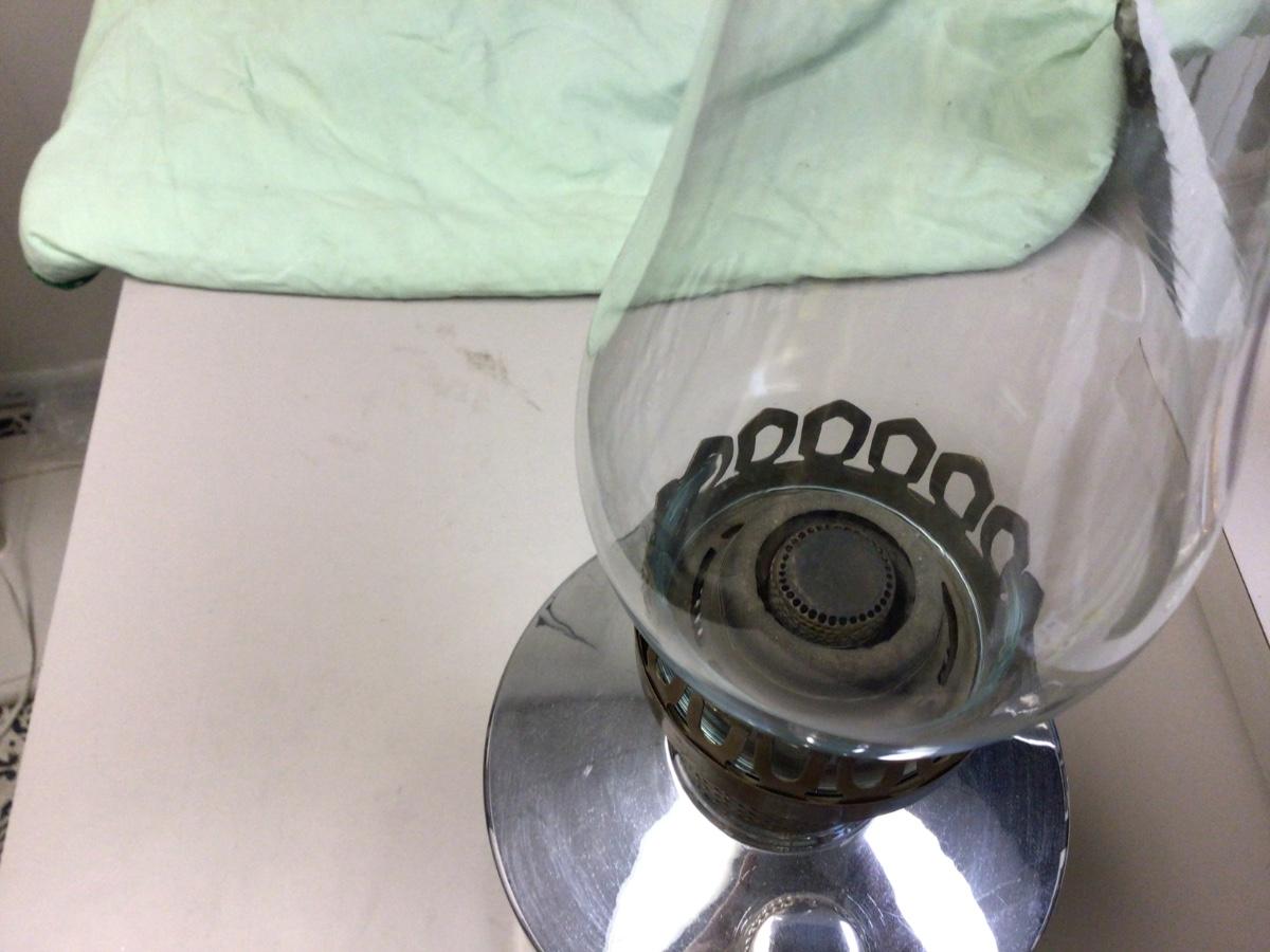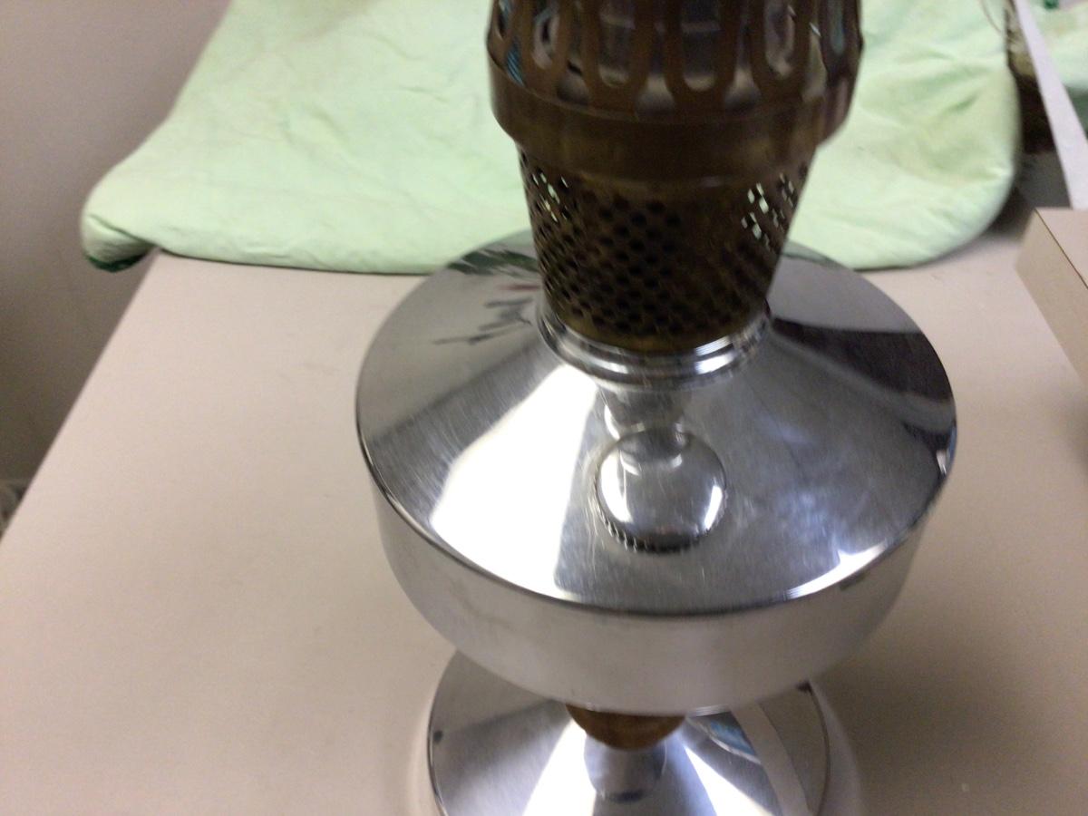 This is a great Aladdin style metal oil lamp with clear glass chimney.
