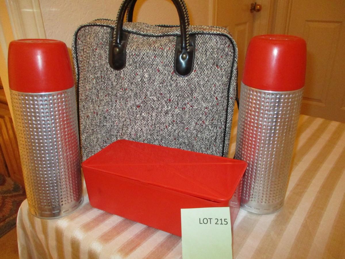 2 Thermos, Plastic red lunch box. Bag. Excellent condition