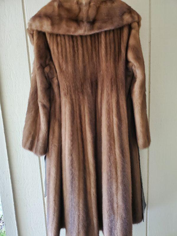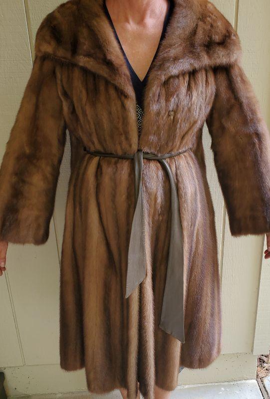 Antique full length mink fur swing coat with front leather belt. No shedding or wear. Comes from a smoke free home, no odors. Size large.