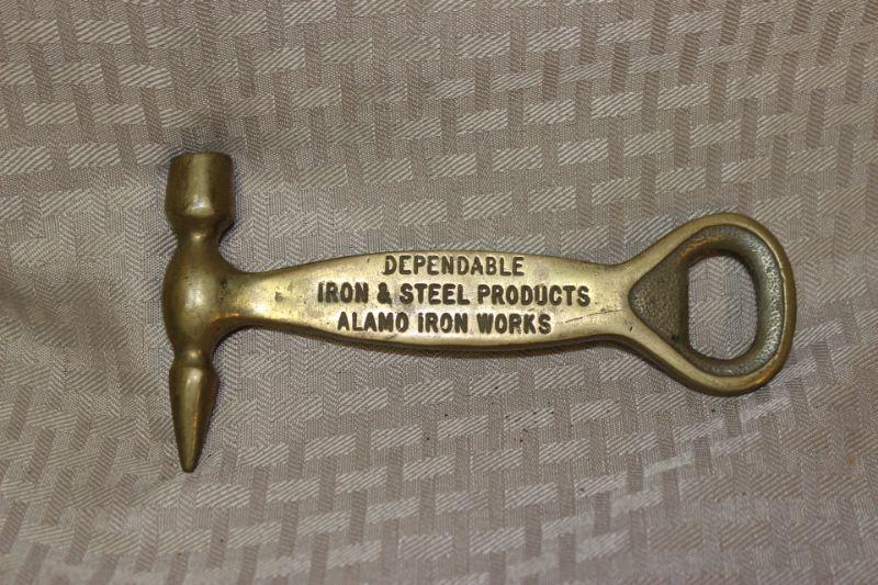 Alamo Iron Works Advertising. Small brass hammer and bottle opener All in one.