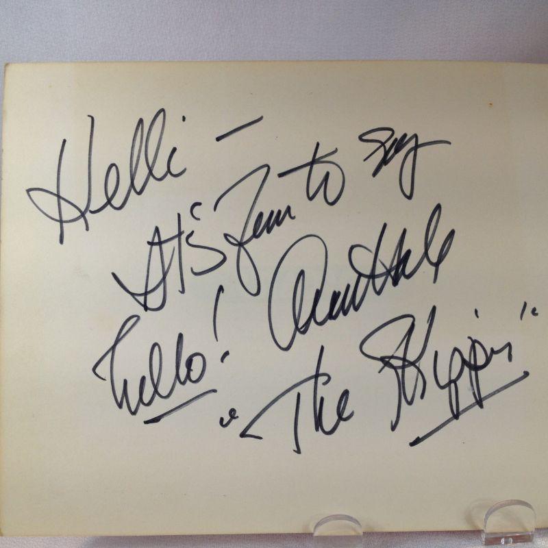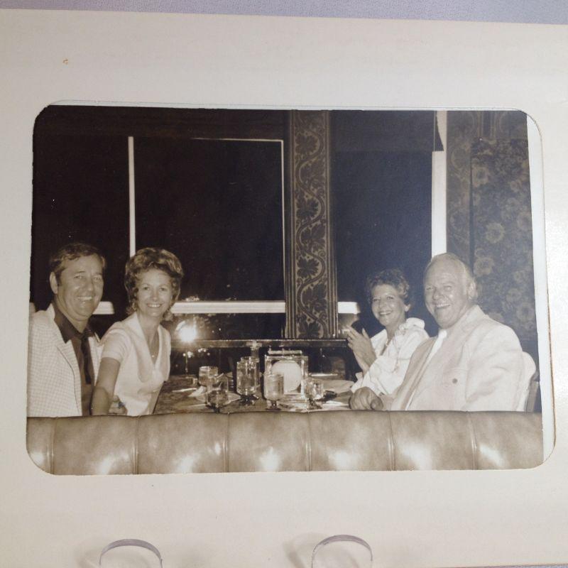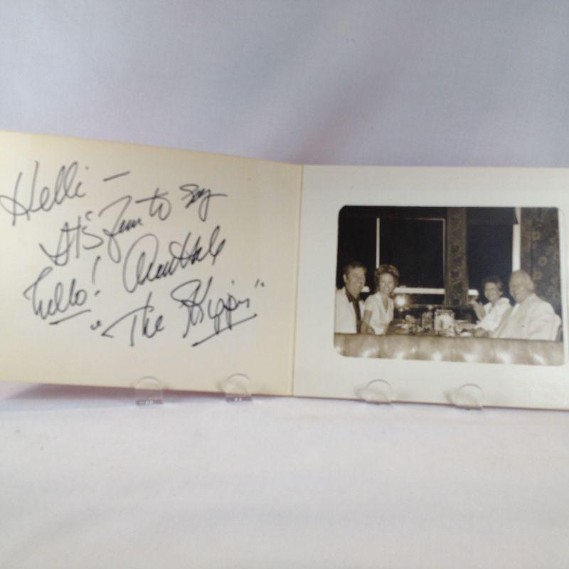 This is a authentically-signed photo of Alan Hale, Jr. "The Skipper" from Gilligan's Island TV Show. Taken at the Holiday Inn Hollywood's revolving restaurant "Oscars" which was across the street form Grauman's Chinese Theater. In the photo is Alan Hale, Jr., Naemi Hale, Edward Milligan, GM of the Hotel and his wife Cindy Milligan. The photo measures 4.5-inches tall X 6.5-inches wide.