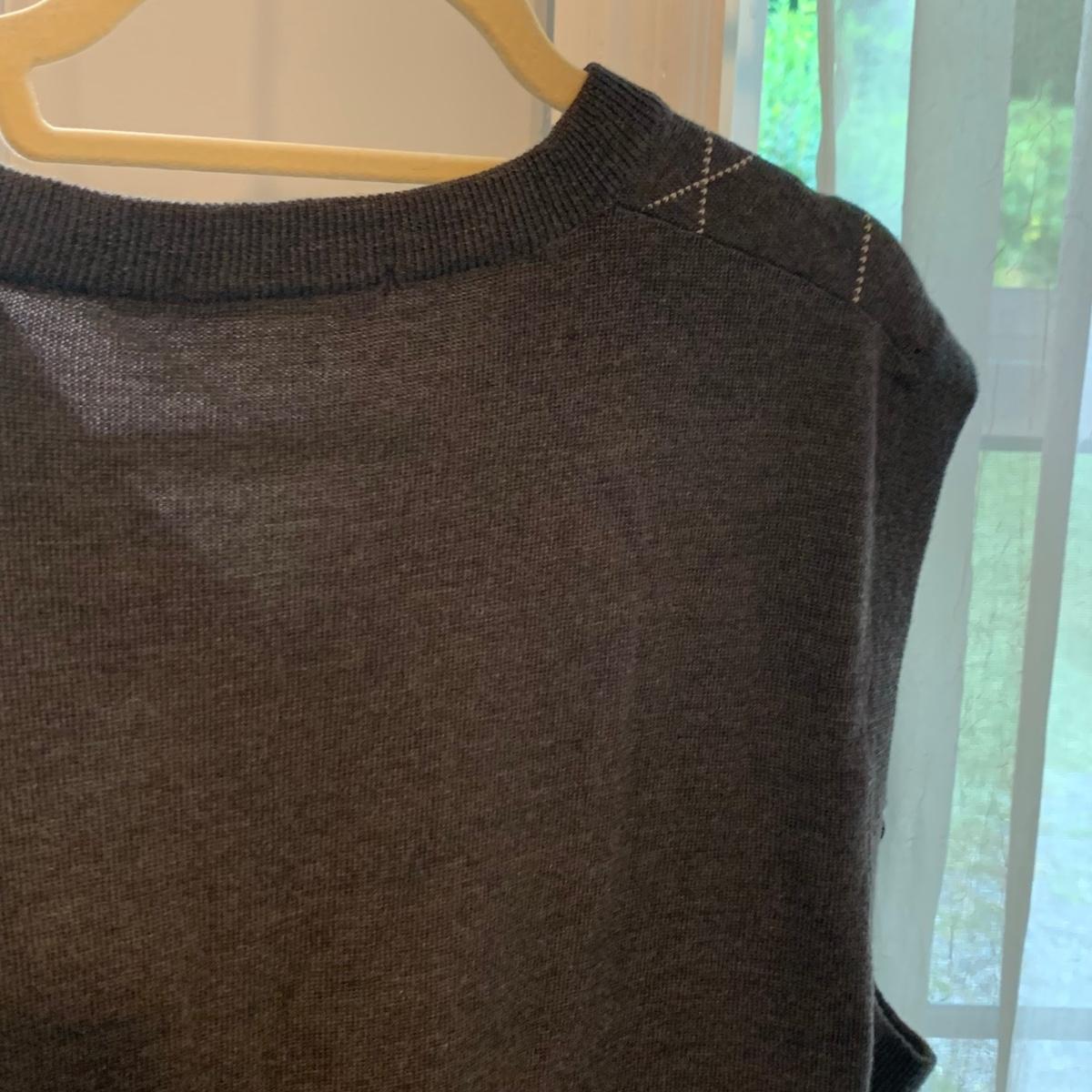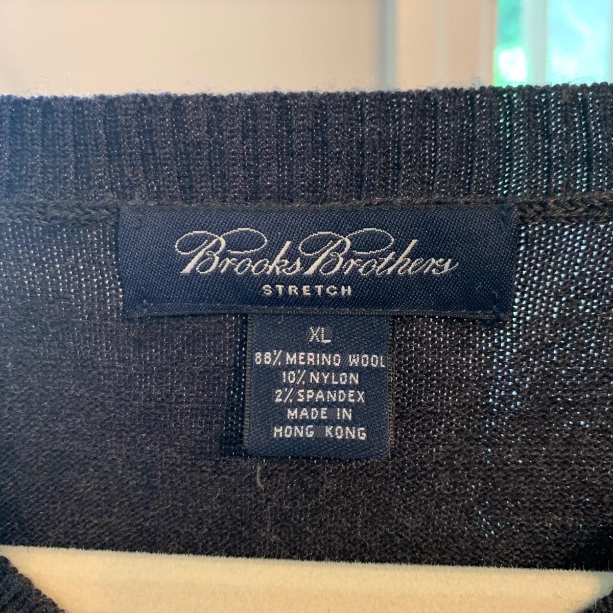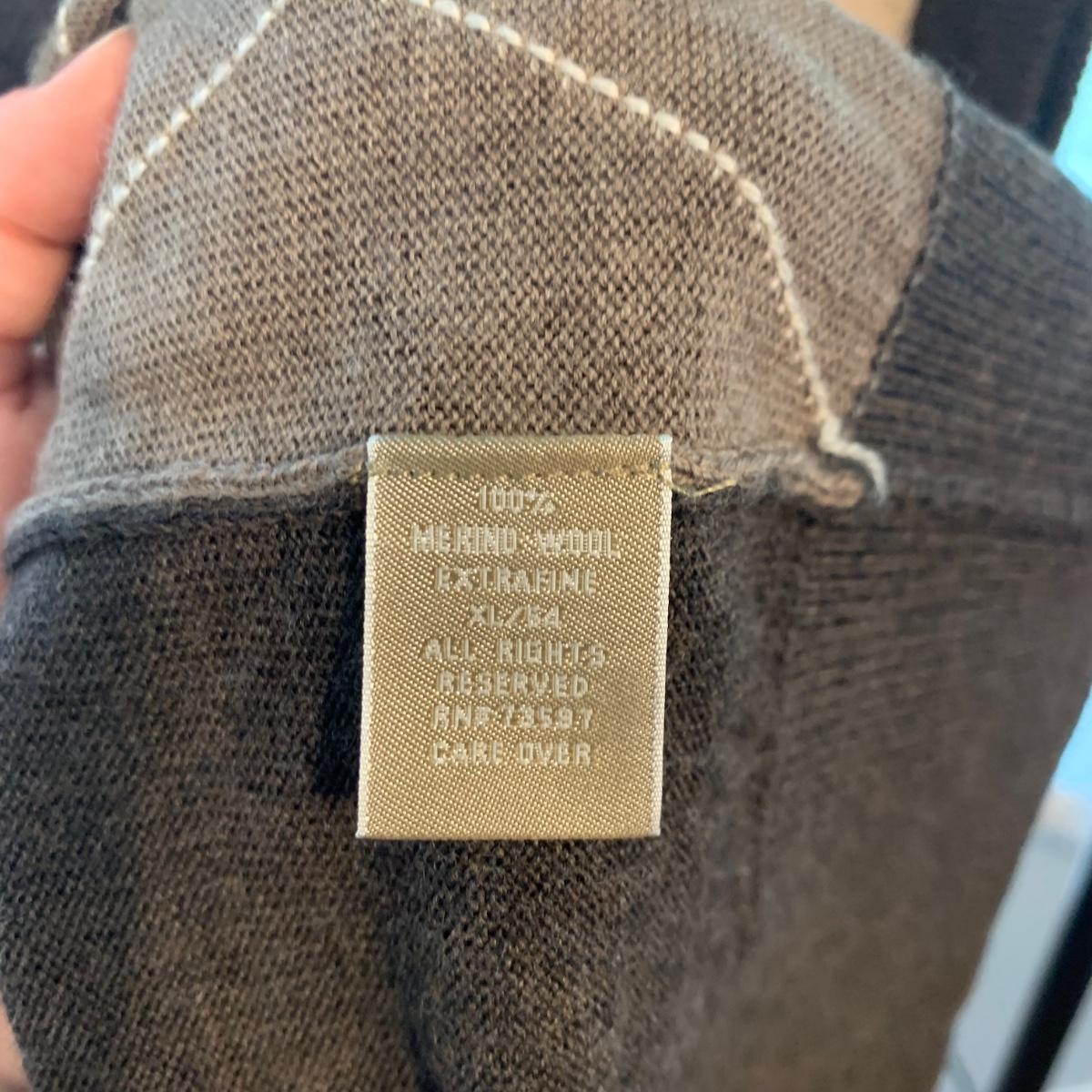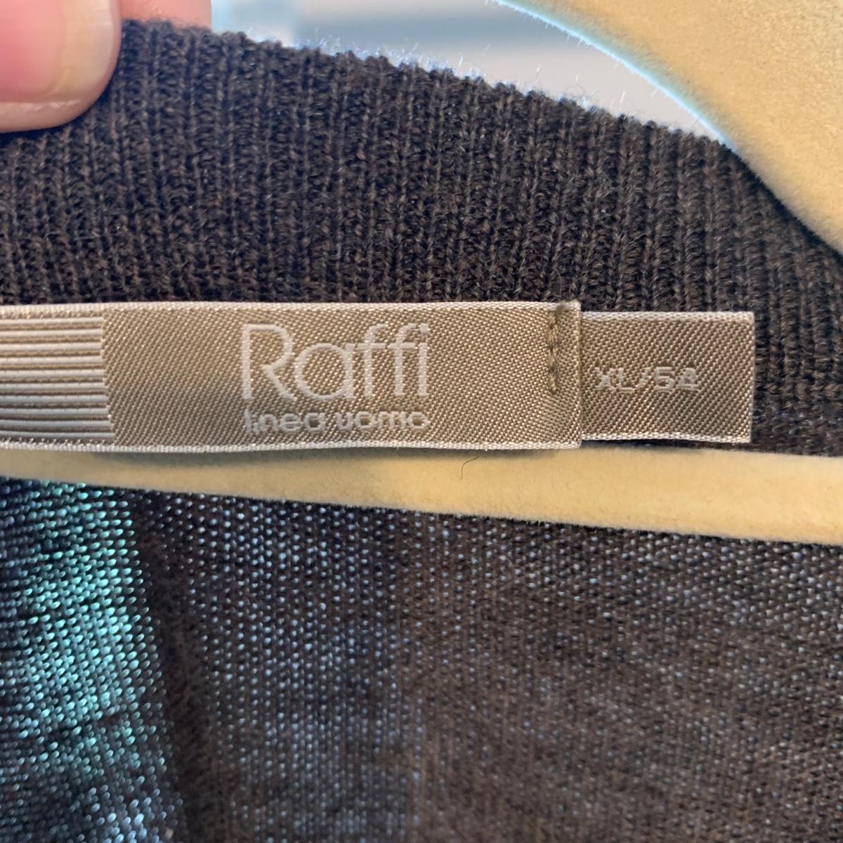 A collection of luxurious cashmere and merino wool sweaters by Alain Paine, Tiger of Sweden, Saks Fifth Avenue, Brooks Brothers, and more. Included are two sweater vests, nine v-neck sweaters, two crew neck sweaters, and a heavyweight cardigan. All items except for the Brooks Brothers navy sweater have tags that state cashmere or wool; the navy Brooks Brothers is mercerized cotton. Most items are XL, but a few are 2X and one is 3X. One tiny hole was found on the back the Raffi sweater vest; see picture. Please see photos for inventory and details. Hangers are not included.