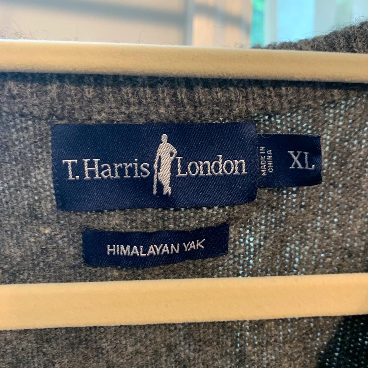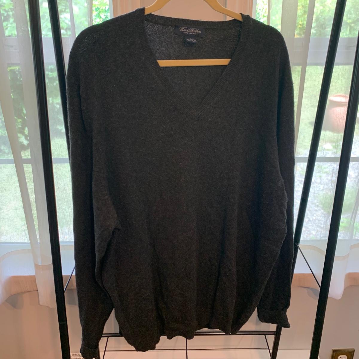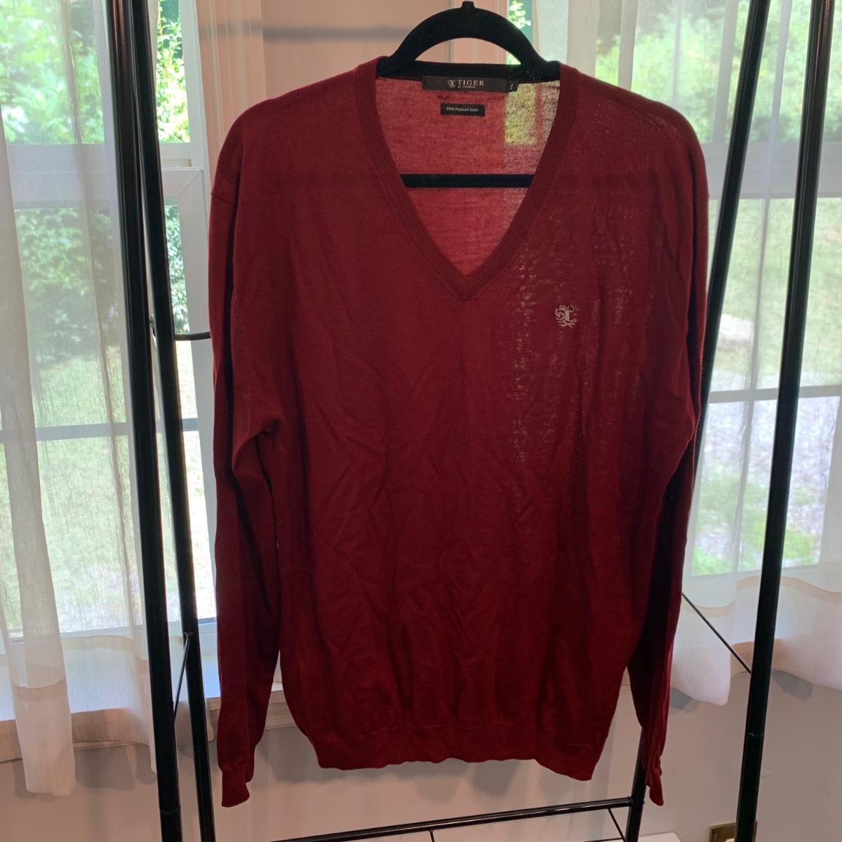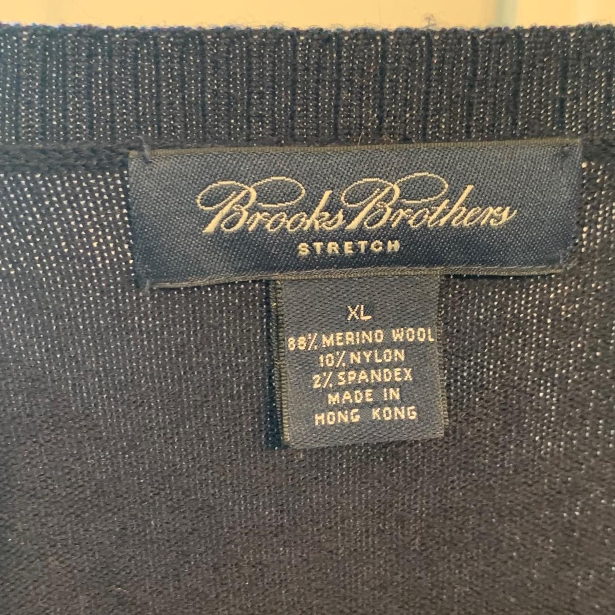 A collection of luxurious cashmere and merino wool sweaters by Alain Paine, Tiger of Sweden, Saks Fifth Avenue, Brooks Brothers, and more. Included are two sweater vests, nine v-neck sweaters, two crew neck sweaters, and a heavyweight cardigan. All items except for the Brooks Brothers navy sweater have tags that state cashmere or wool; the navy Brooks Brothers is mercerized cotton. Most items are XL, but a few are 2X and one is 3X. One tiny hole was found on the back the Raffi sweater vest; see picture. Please see photos for inventory and details. Hangers are not included.