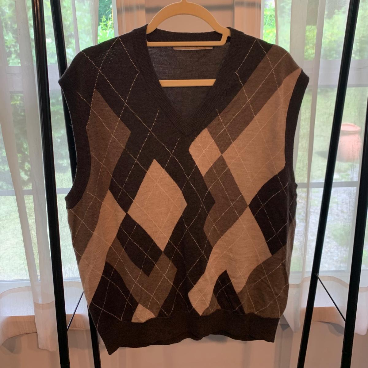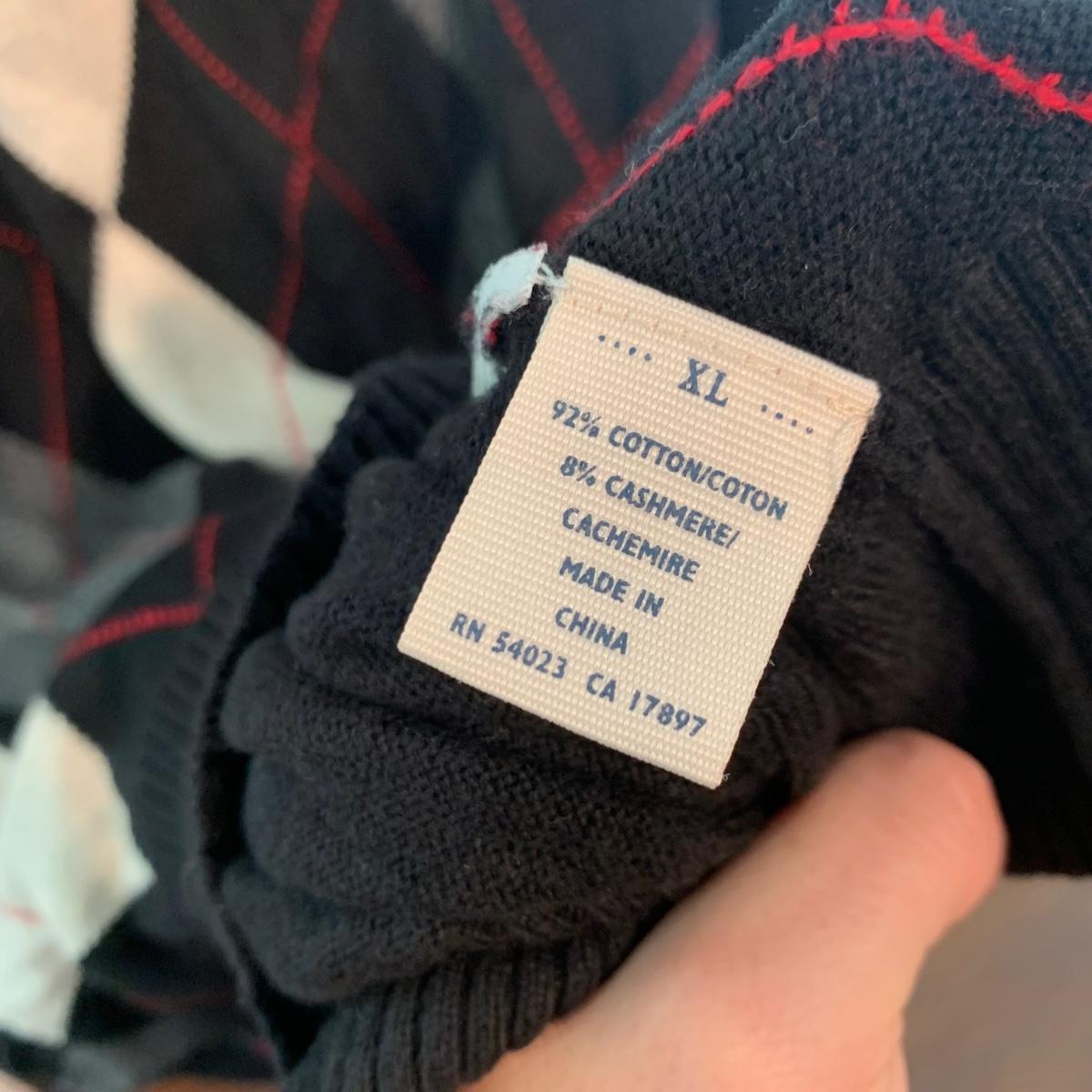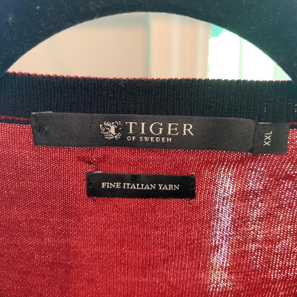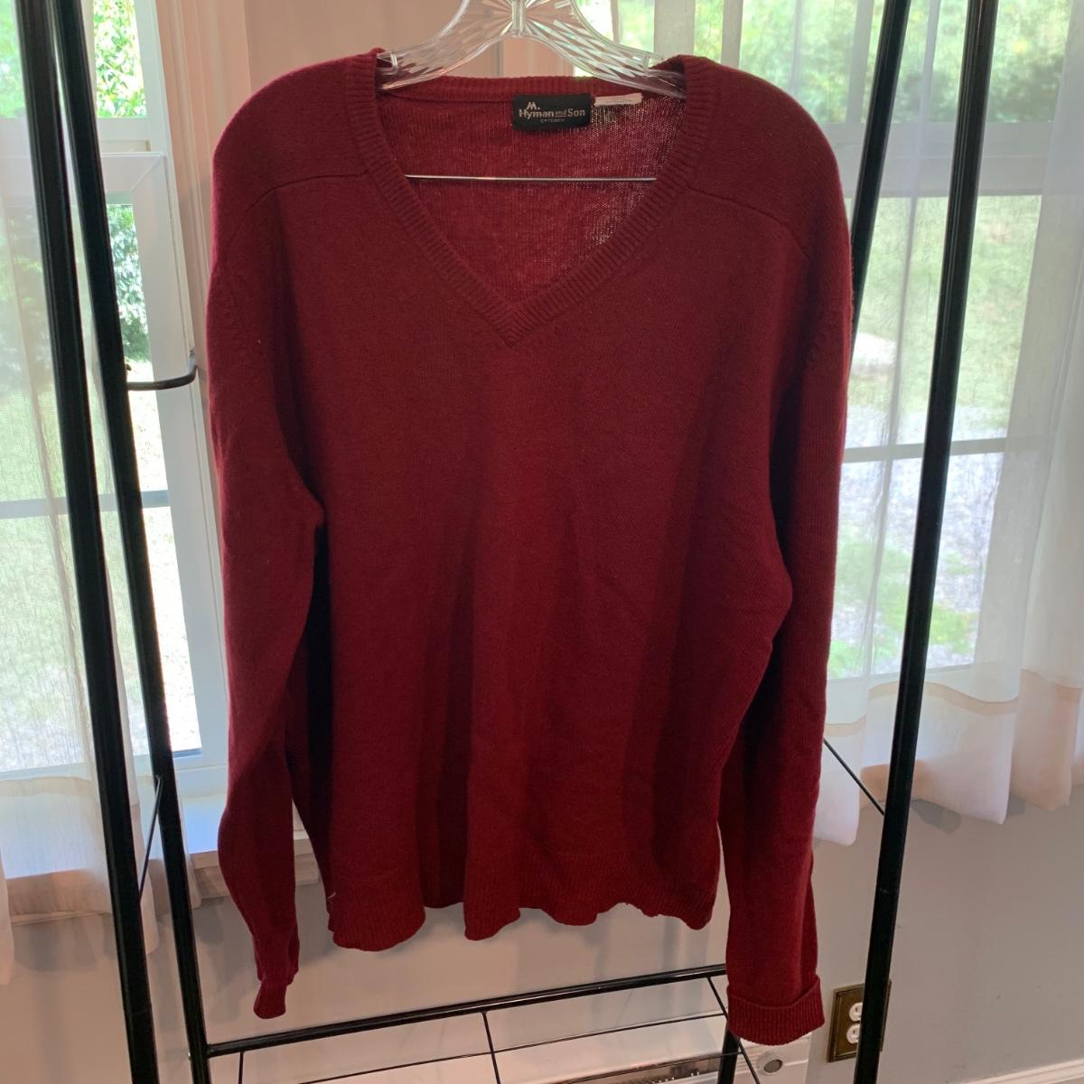 A collection of luxurious cashmere and merino wool sweaters by Alain Paine, Tiger of Sweden, Saks Fifth Avenue, Brooks Brothers, and more. Included are two sweater vests, nine v-neck sweaters, two crew neck sweaters, and a heavyweight cardigan. All items except for the Brooks Brothers navy sweater have tags that state cashmere or wool; the navy Brooks Brothers is mercerized cotton. Most items are XL, but a few are 2X and one is 3X. One tiny hole was found on the back the Raffi sweater vest; see picture. Please see photos for inventory and details. Hangers are not included.
