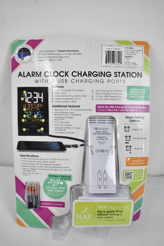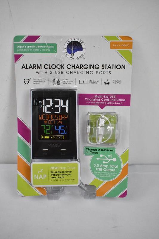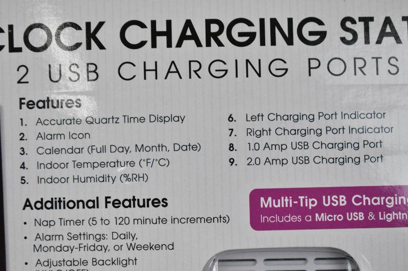 Alarm Clock Charging Station with 2 USB Charging Ports - New