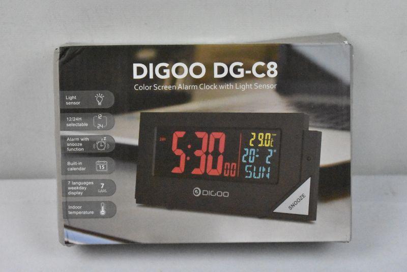 Alarm Clock, DIGOO DG-C8 Automatic-Dimming Colorful, with Light Sensor, Thermometer Display, and Snooze Function - New
