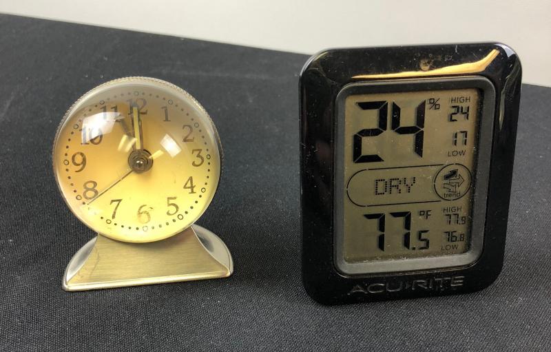 Here is a bedside alarm clock and an Acu-rite digital weather station...Used condition...