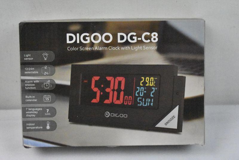 Alarm Clock, DIGOO Colorful Clock w/ Light Sensor, Thermometer - New