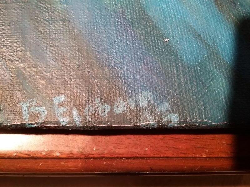 Framed signed dated, by Albanian Artist Besnik Erebara. Painted during civil unrest 1993.