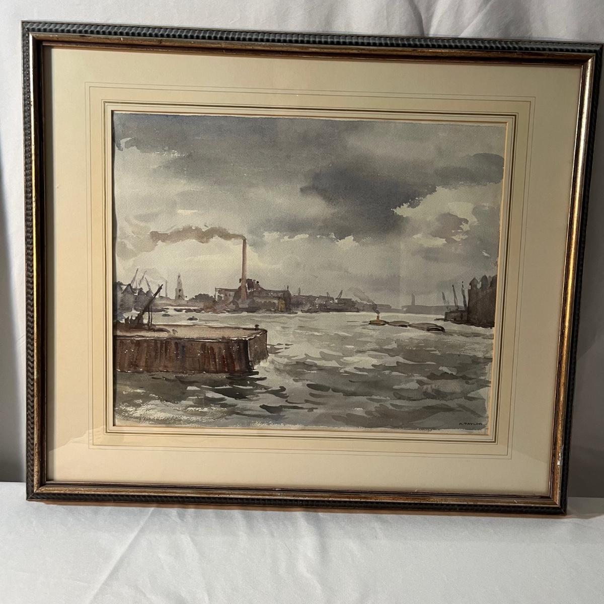 Lot includes a piece of framed and matted art by British artist Albert Taylor. Piece is under glass and appears to be a painting with Artists name on bottom of painting. Wooden Frame measures 22” x 26”.