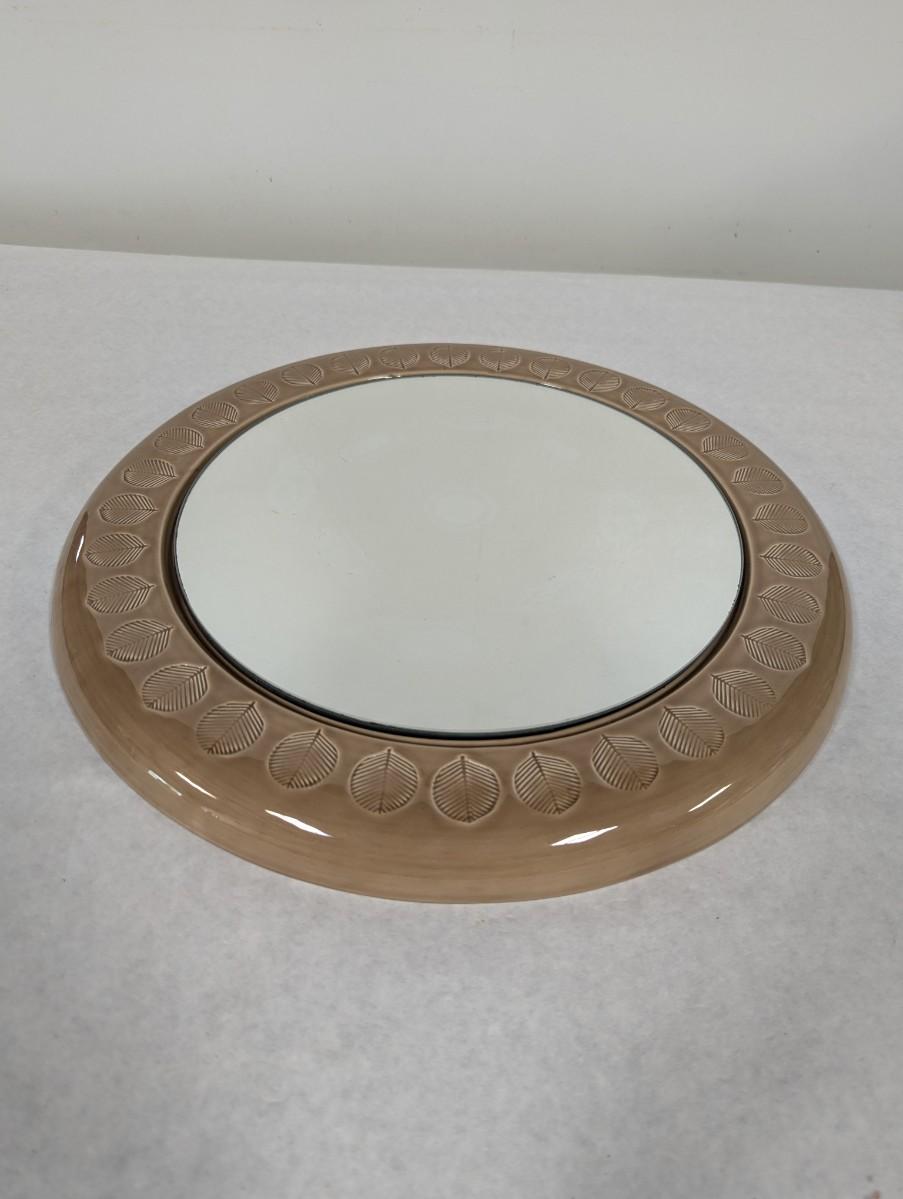 Aldo Londi Bitossi Beige Glazed Ceramic Round Wall Mirror