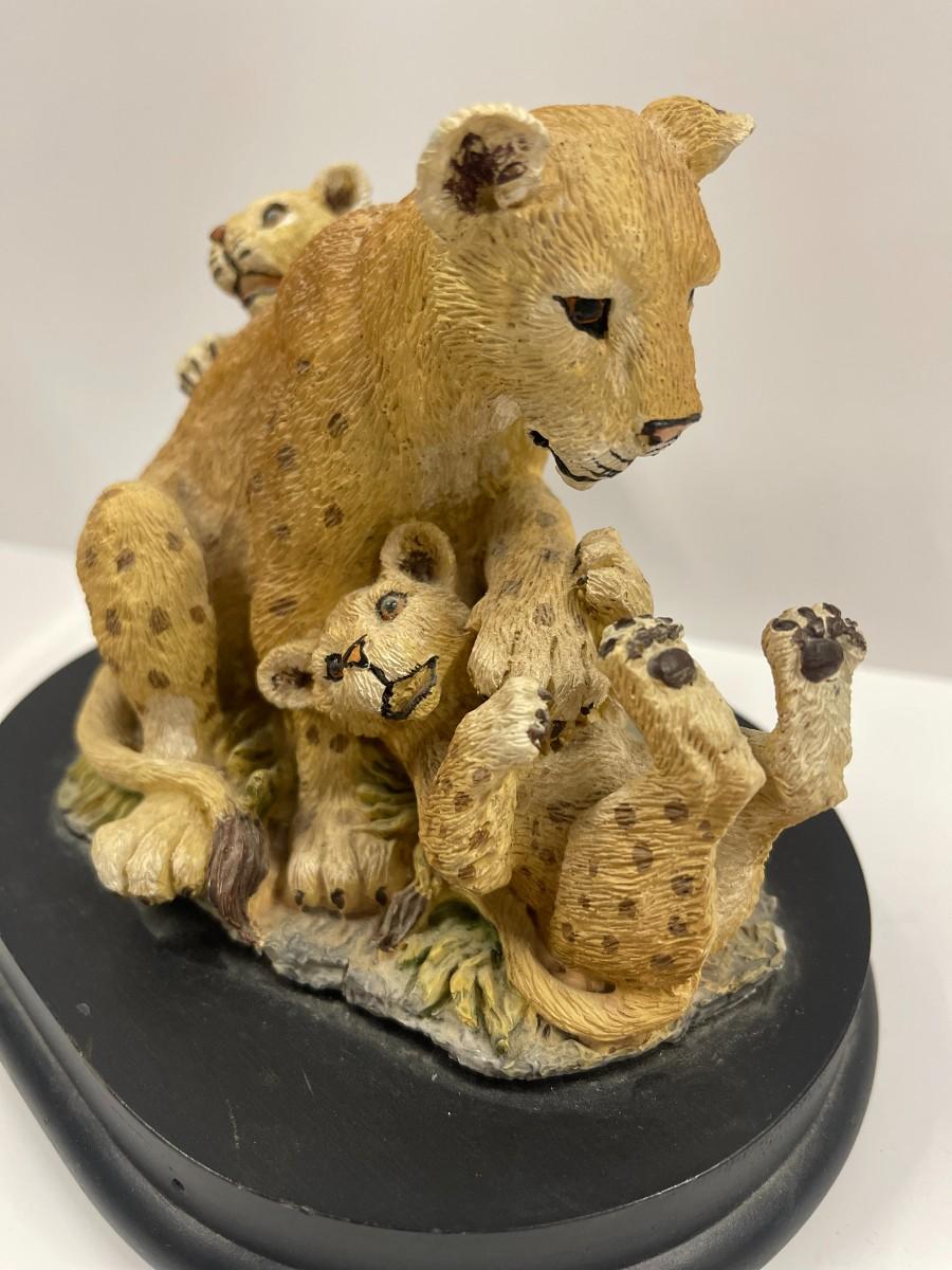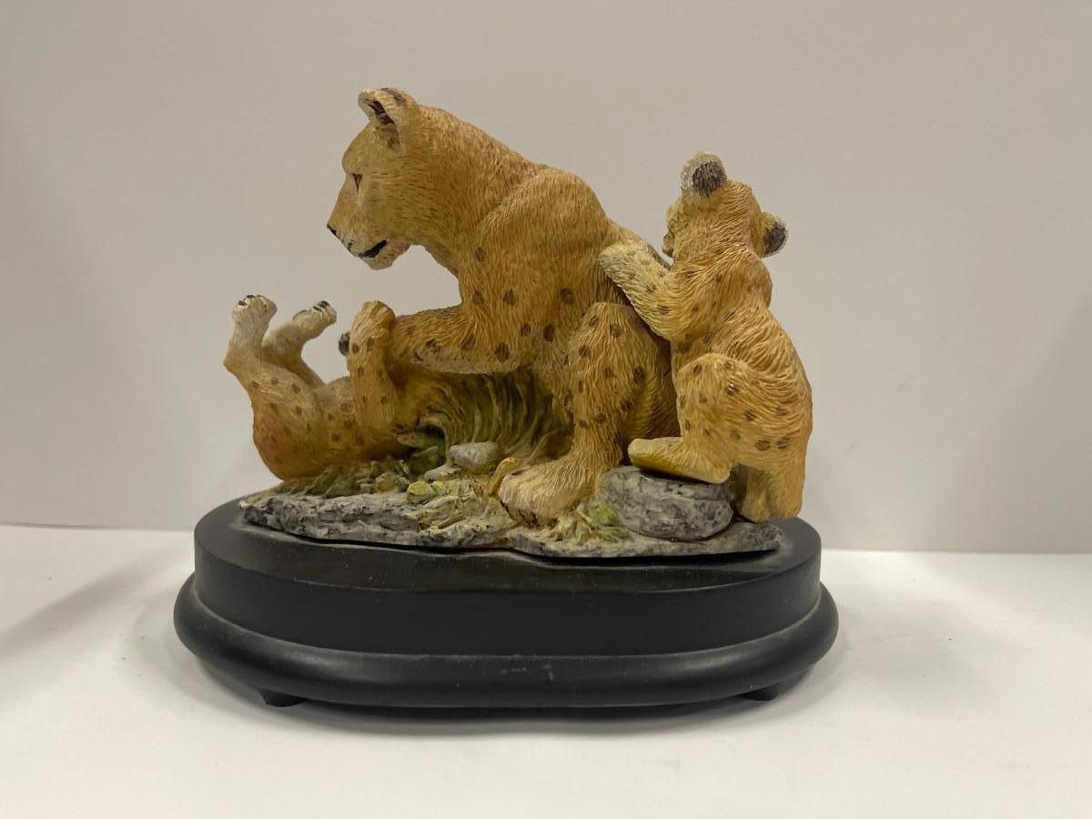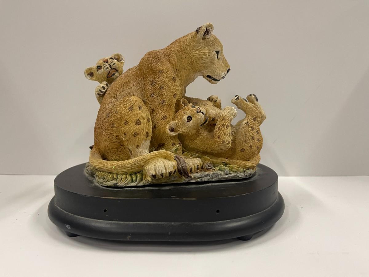 Aldon Accessories, Families of the Wild Collection music box. Resin sculpture of a family of Asiatic lions, 7" wide x 6" high. Limited edition.