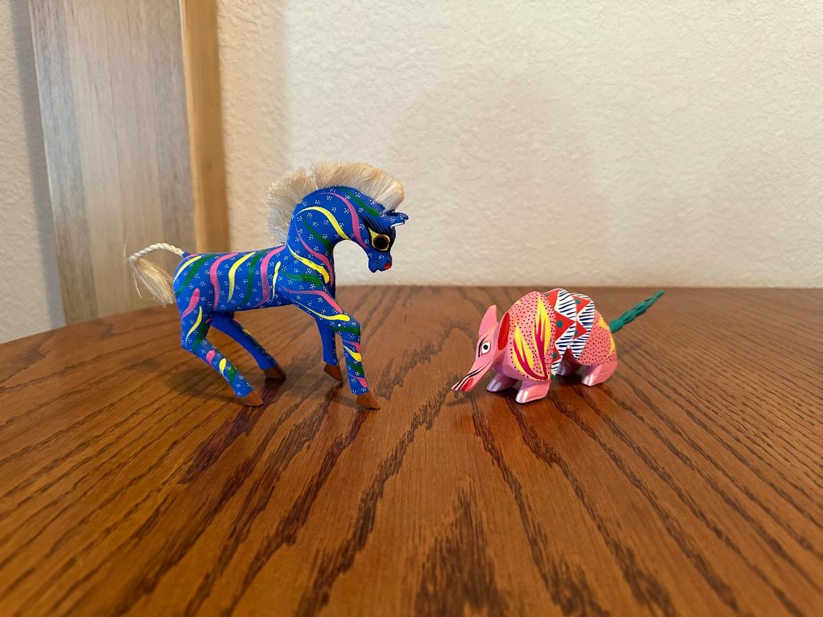 ALEBRIJE HORSE AND ARMADILLO - HAND PAINTED AND WOOD CARVED
