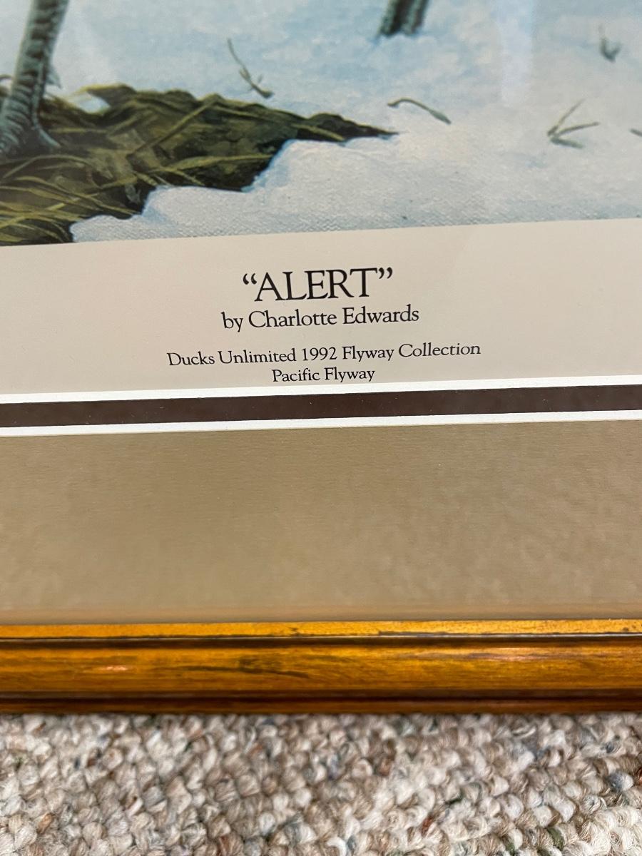 Alert Print with frame by Charlotte Edwards. Dimensions 29”x23 1/2”