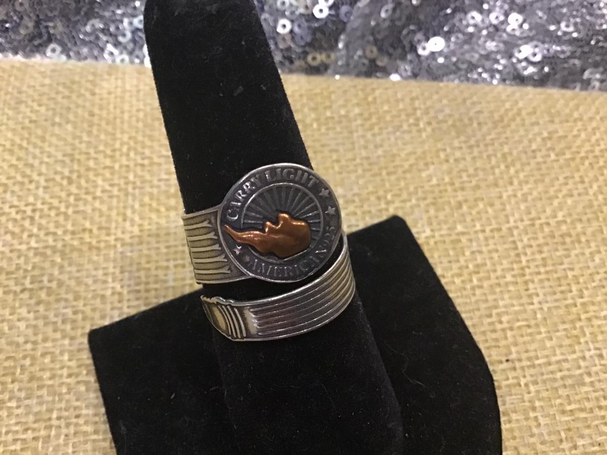 ALEX & ANI LIBERTY 925 Sterling CARRY LIGHT Liberty COPPER SPOON Wrap Band Ring