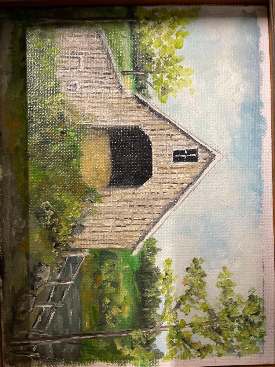 Alex Mugmon Original Acrylic on Canvas. Signed bottom left. Canvas has slipped from the frame. Otherwise art is in excellent condition.