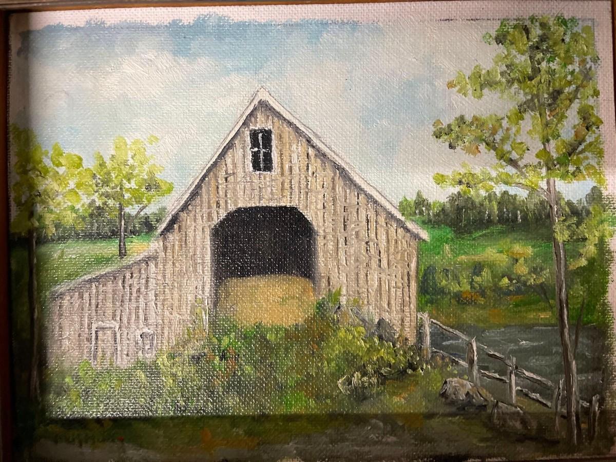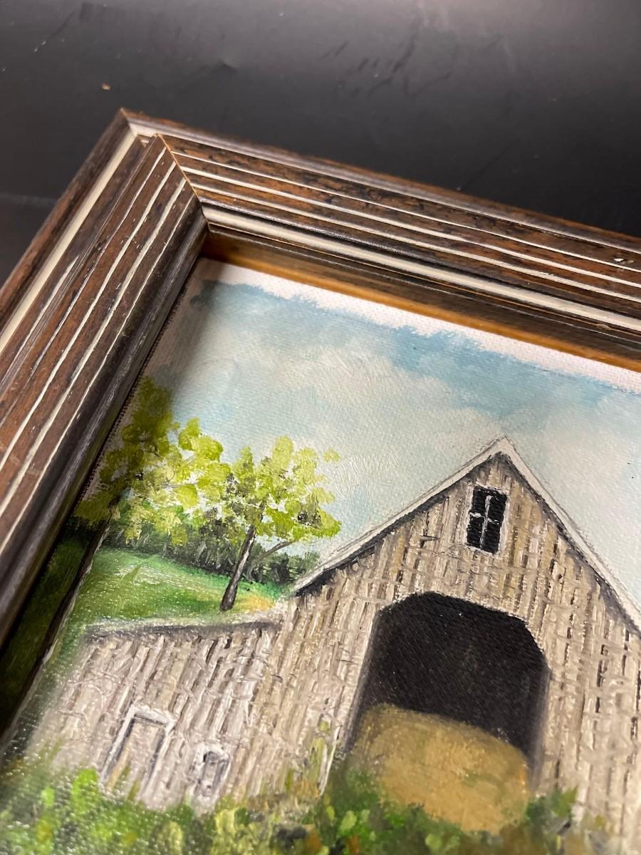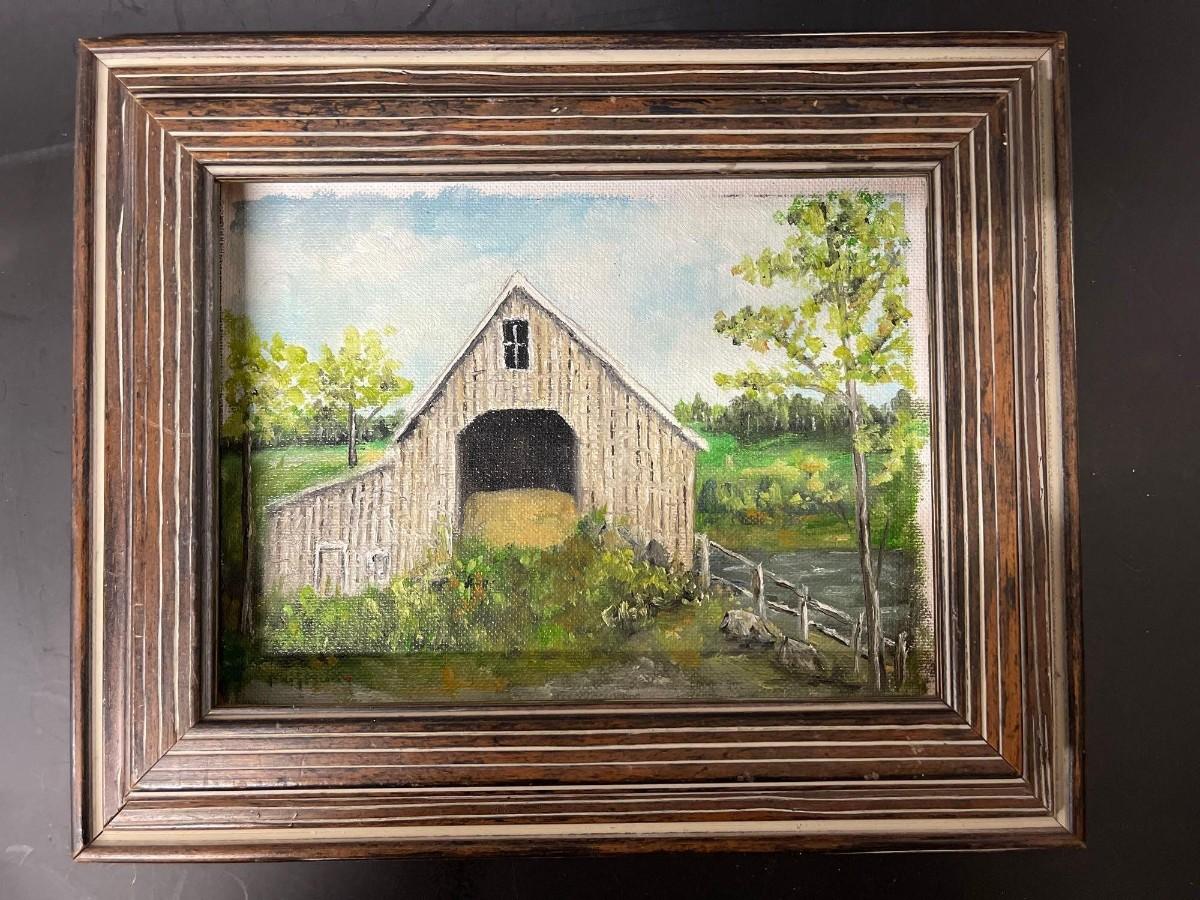 <p>Alex Mugmon Original Acrylic on Canvas. Signed bottom left. Canvas has slipped from the frame. Otherwise art is in excellent condition. </p>