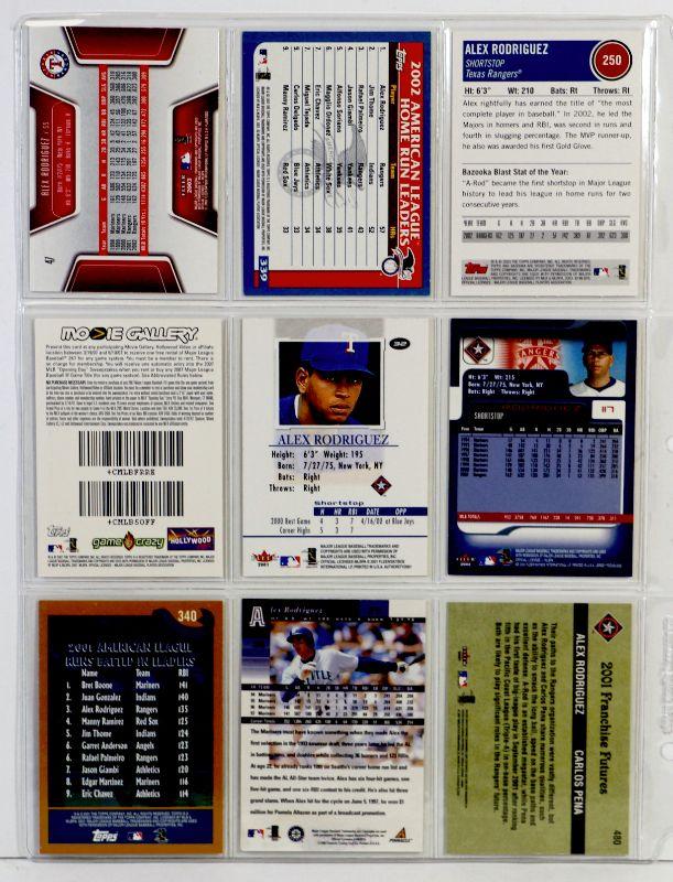ALEX RODRIGUEZ BASEBALL CARDS SET OF 9 - MINT