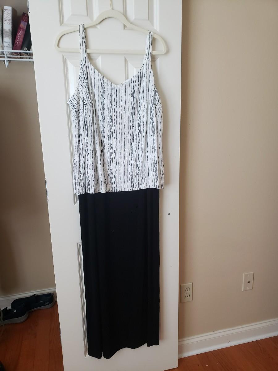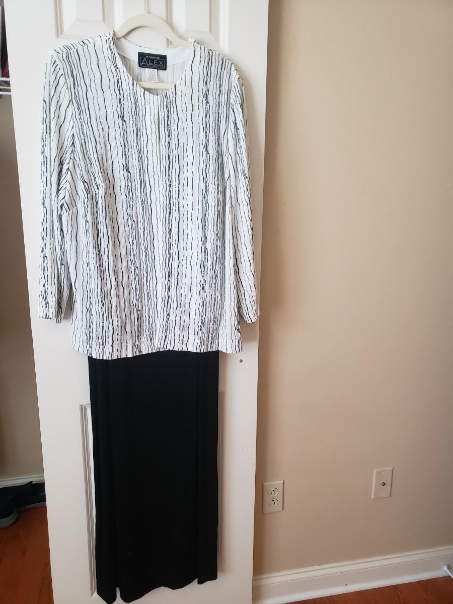 Alex Women's 2 piece evening dress. Black & white striped jacket & tank top dress. Skirt of dress is solid black. No size tags. Plus size approximately 1X