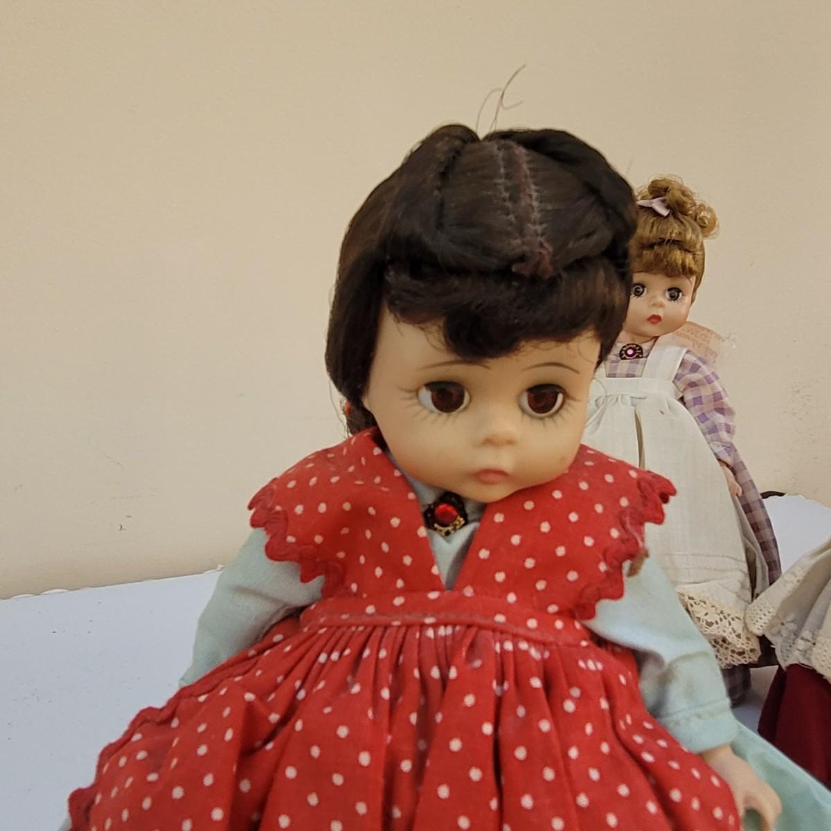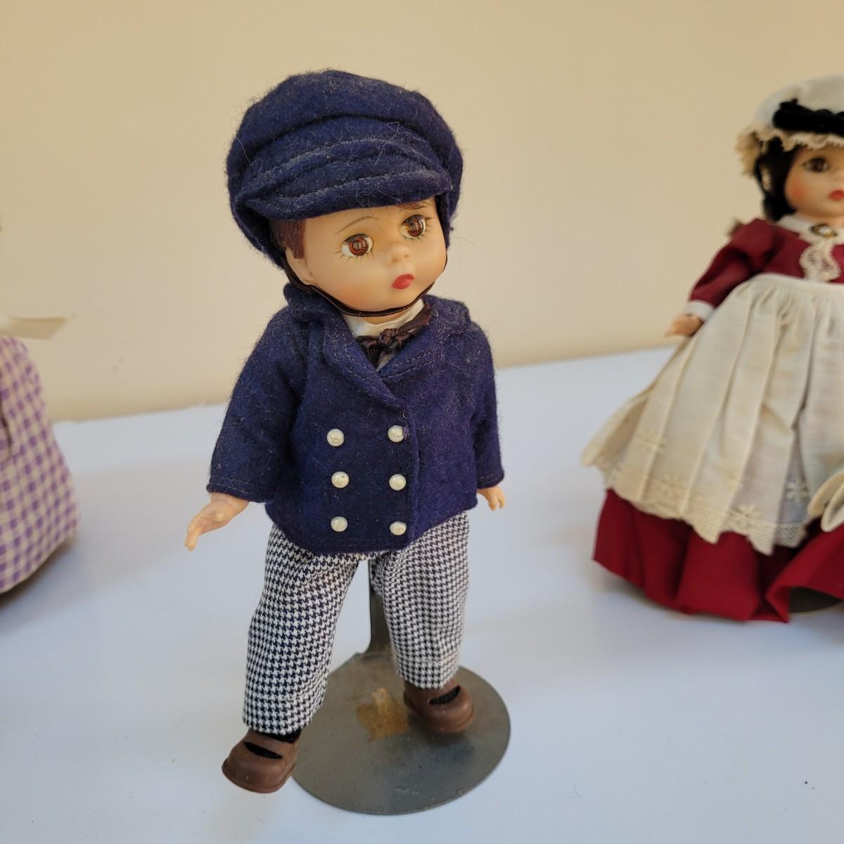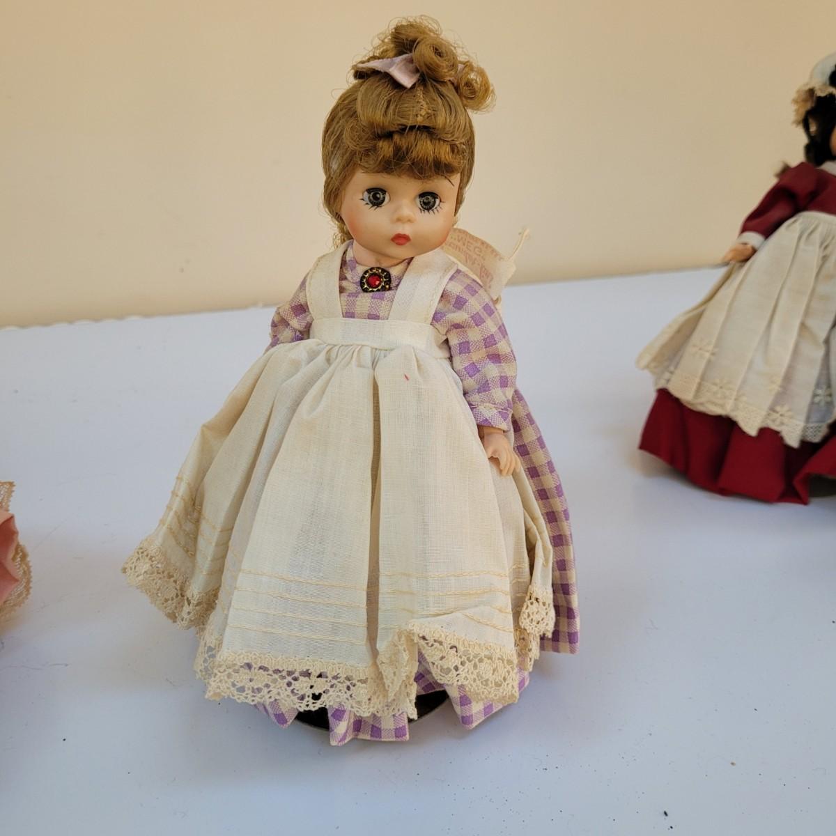 A collection of six vintage Alexander-kins “Little Women” dolls by Madame Alexander, including Jo, Amy, Laurie Little-Men, Beth, Marme and Meg. Eyes open and shut. Measure approximately 8"H. Shipping available.
