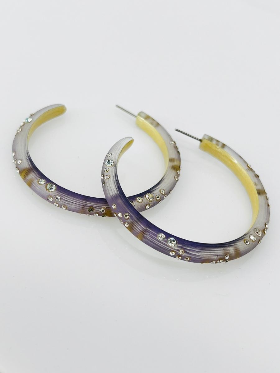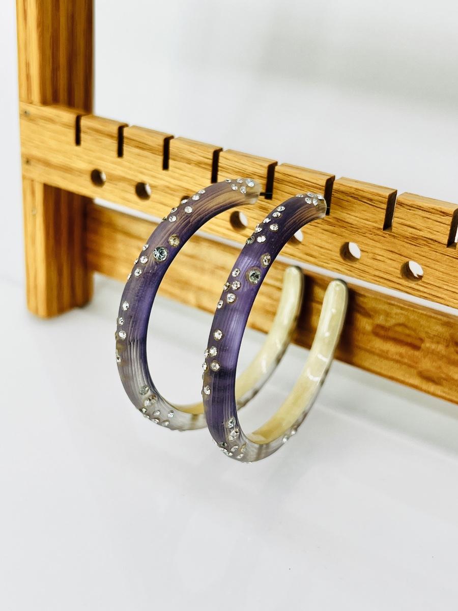 Alexis Bitter ~ Fashion CZ lucite lavender hoop earrings ~ Approximately 2” ~ No backs ~ Estate of Elizabeth Kinsley