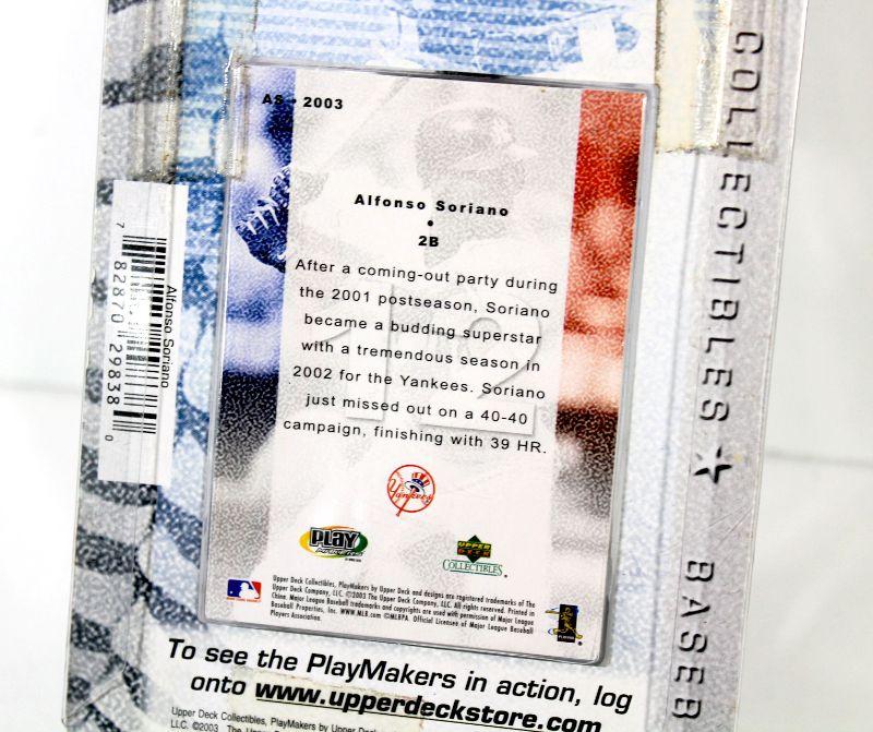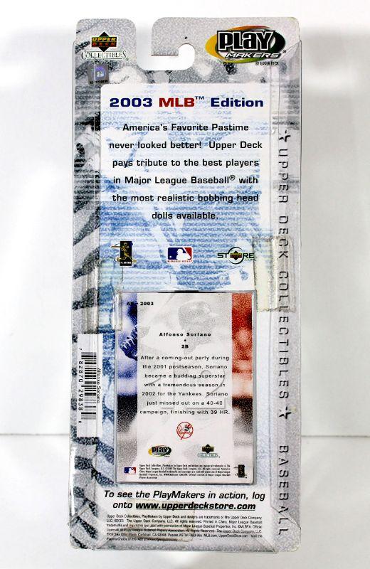 Rare Collector's Item - NOS - Factory Sealed Alfonso Soriano of New York Yankees, MLB Edition 2003 Upper Deck Play Makers Booble Head Sport Action Figure, also included is Limited Edition Alfonso Soriano baseball card.