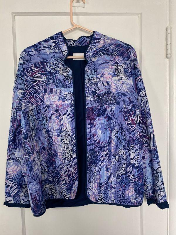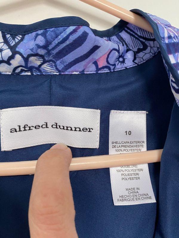 Alfred Dunner blue/purple floral pattern coat. Open front, no buttons or zipper. Size 10.