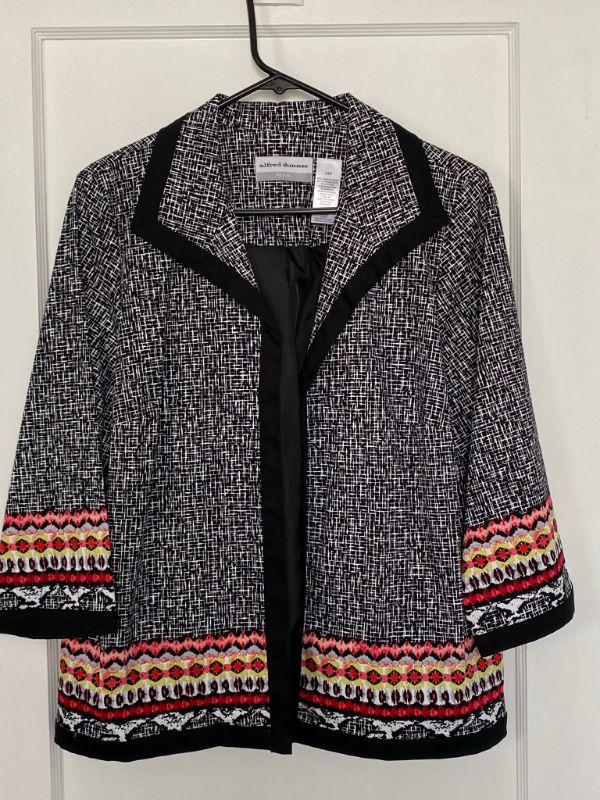 Alfred Dunner Petite Black Bright Pattern Jacket Coat Size 12 YD#019-0049