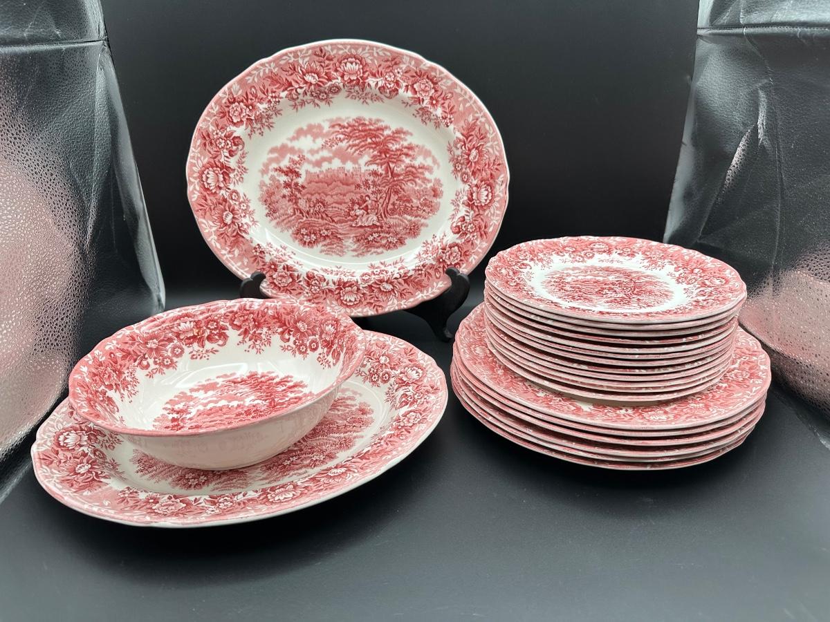 Alfred Meakin Staffordshire “The Courtship” Red Transferware Dinnerware & Serving