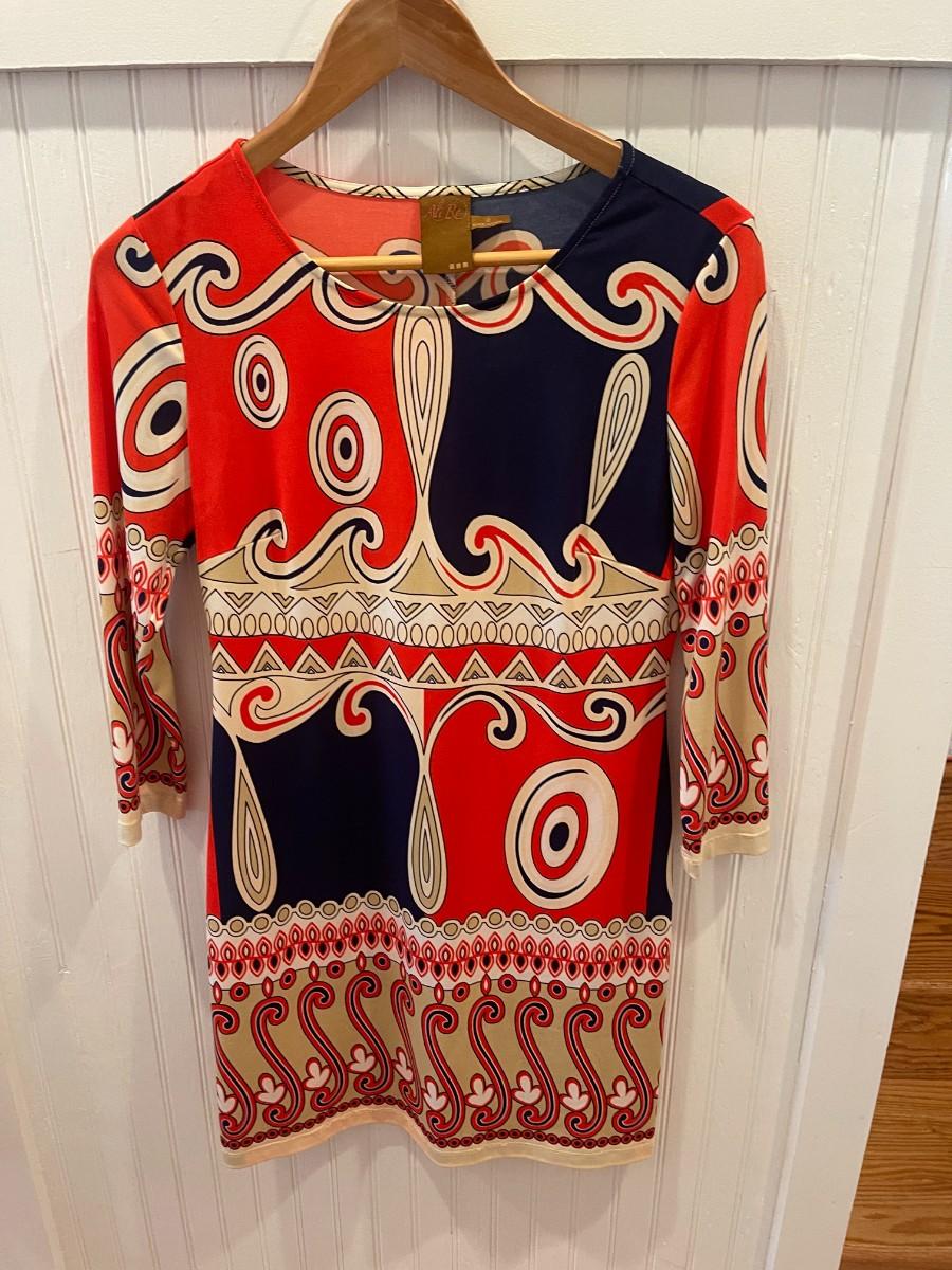 ALI RO: ORANG/BLACK STRETCH DRESS (WOMEN'S) SIZE 6