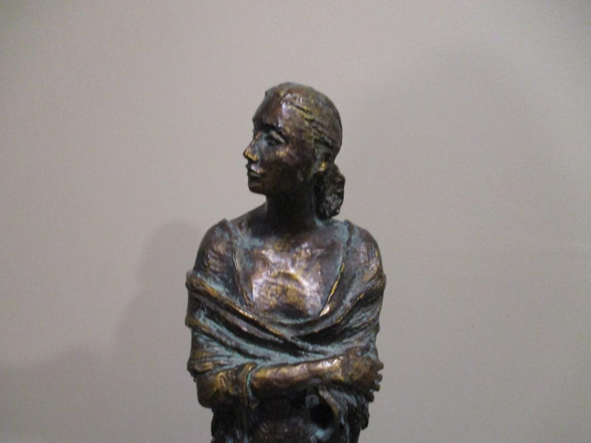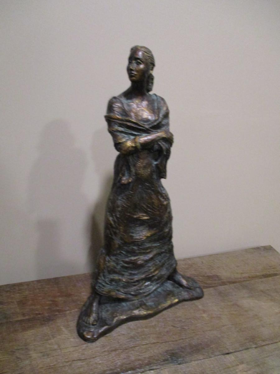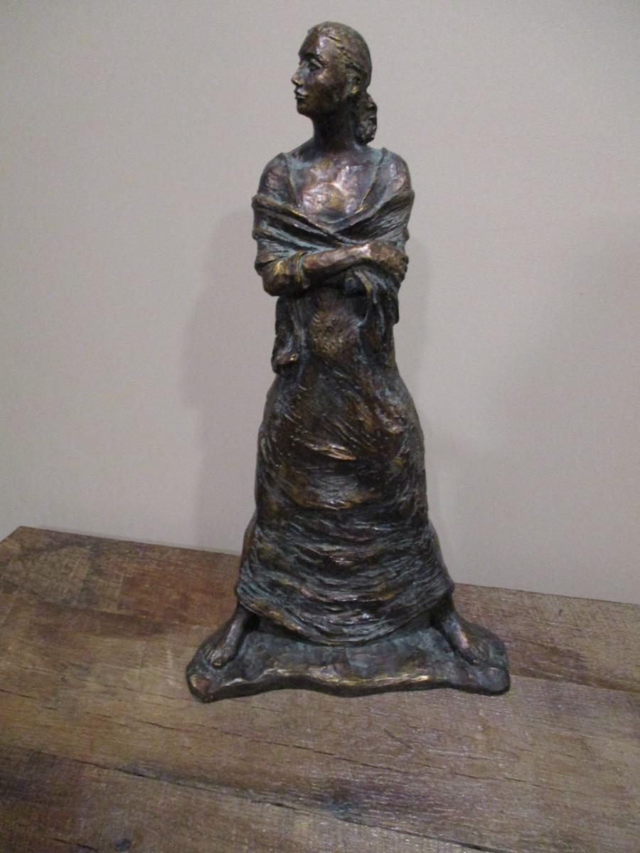 Alice Heath Sculpture by Austin- Wrapped Lady. Sculpture is made of Durastone then hand finished with an antique bronze effect. There is a small piece of finish missing on the back- please see pictures.