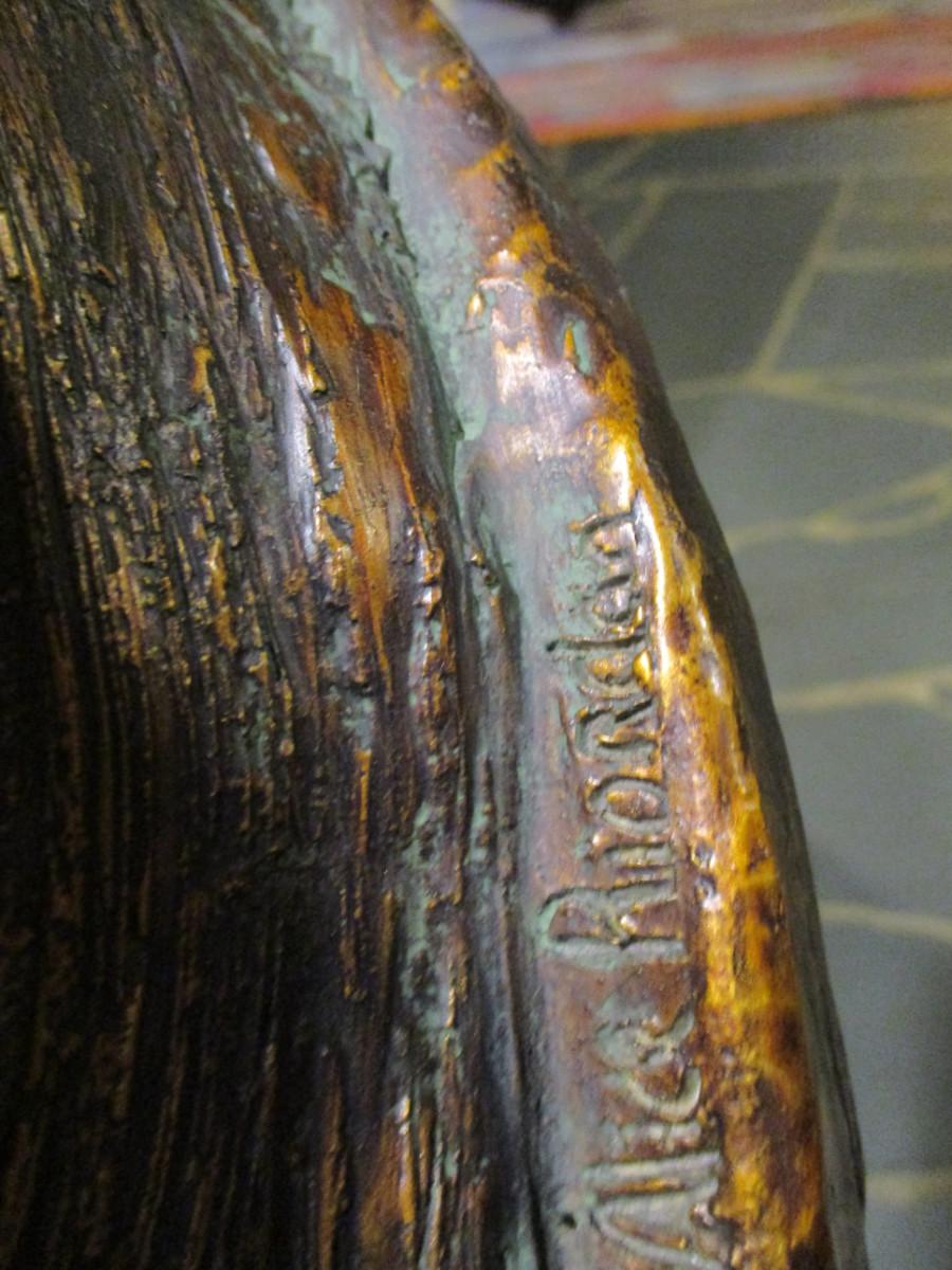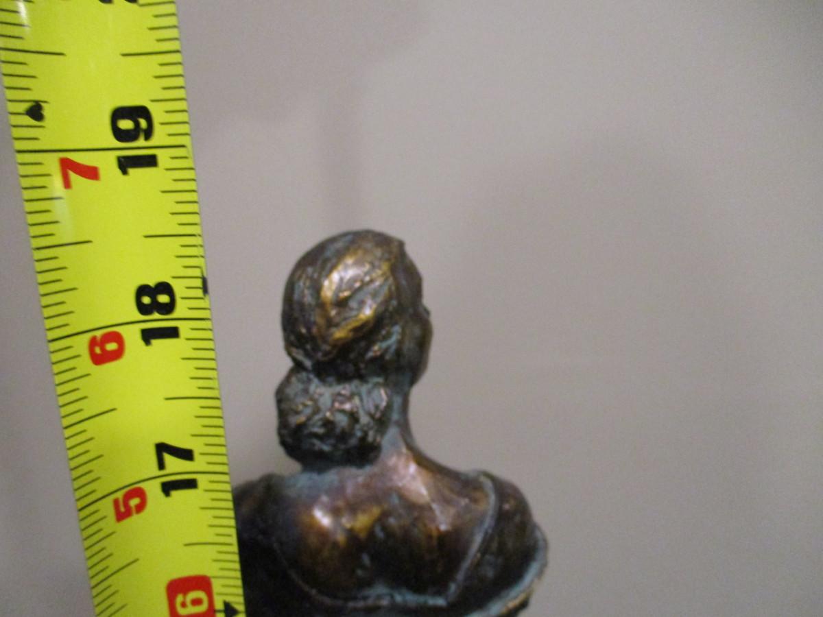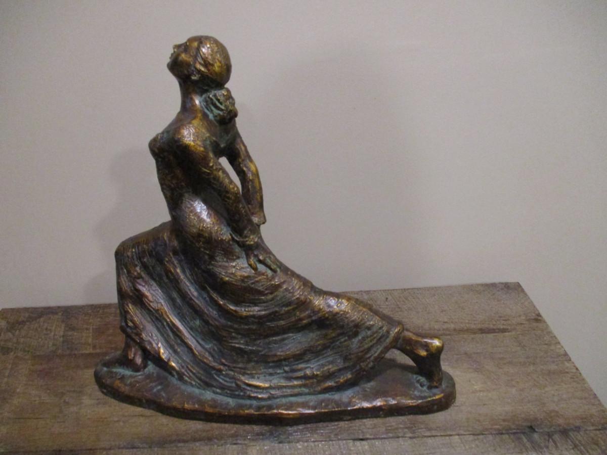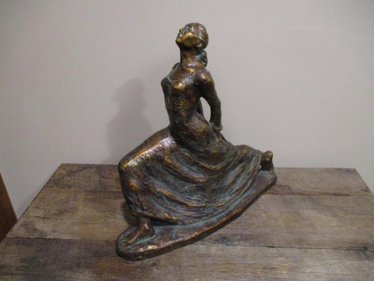 Alice Heath Sculpture by Austin- Stretching Lady. Sculpture is made of Durastone then hand finished with an antique bronze effect.